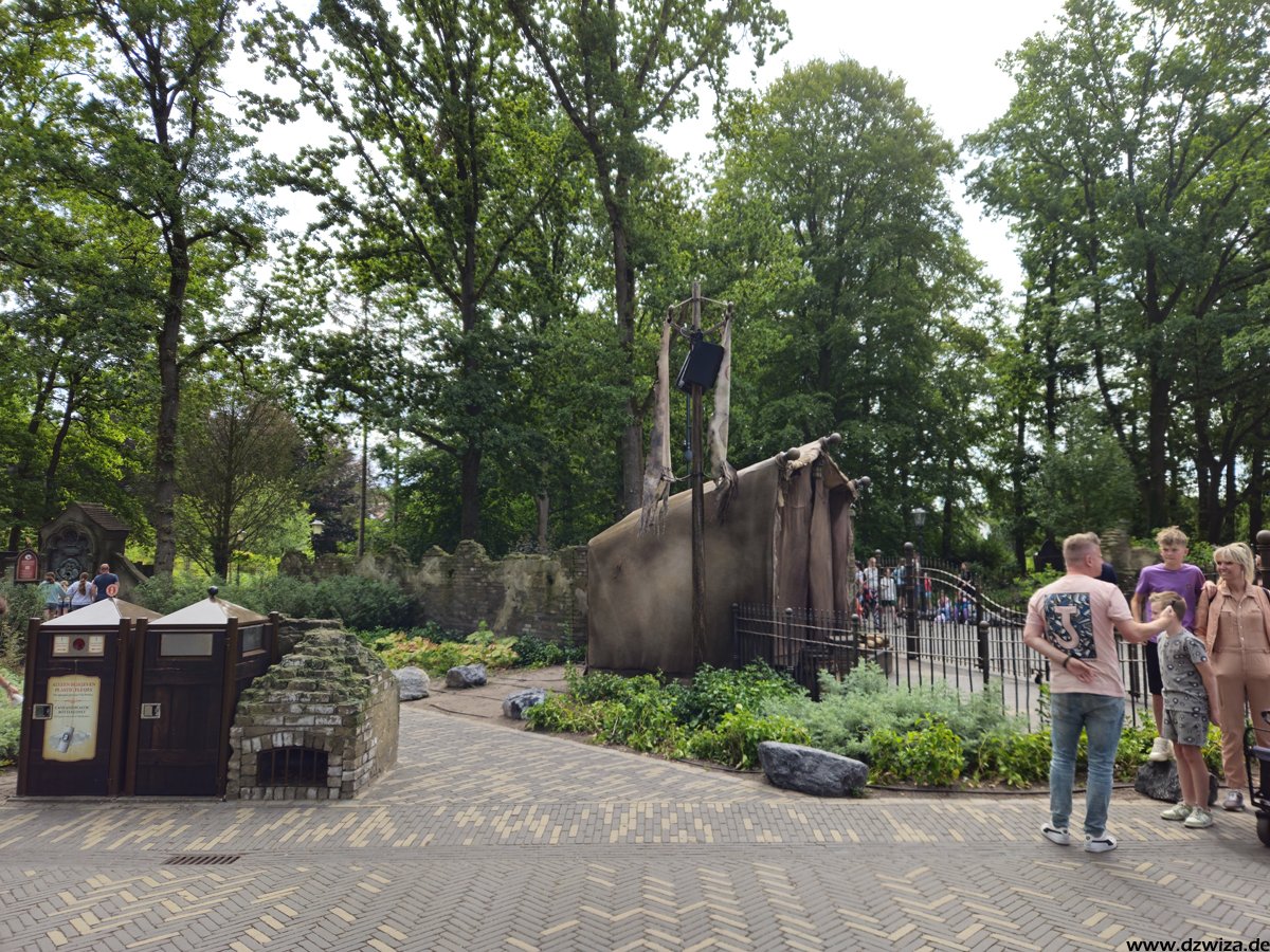 Weiter südlich und zum Abschluß des Rundgangs liegt Anderrijk (Andersland). Neben der Raftinganlage Pirana gibt es einen Dark Ride zum Thema 1001 Nacht: Fata Morgana. Das Spukschloss von damals ist dem eingangs erwähnten Dance Macabre gewichen, die Schweizer Bobbahn hat für Max & Moritz Platz gemacht. Hatte ich im Jahr 2018 geschrieben, dass die Schweizer Bobbahn ganz furchtbar und wie in den letzten Betriebsjahren anfühlte, gab es ein Jahr später dann tatsächlich den Abriss und kurz danach einen Ersatz.