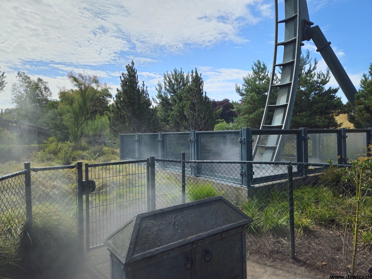 Am großen See vorbei kommt man oberhalb (nördlich) des Sees und unterhalb (südlich) davon weiter. Südlich geht es zurück in Richtung Symbolica, also folgen wir dem nördlich Weg um den See herum. So kommen wir den Themenbereich Ruigrijk (Rohland). Dieser Themenbereich ist für alle, die es etwas thrilliger mögen, der wichtigste Anlaufpunkt. Hier steht Python, die 750 Meter lange Looping-Achterbahn von Vekoma (seit der letzten Überholung gilt: es gibt auch bei Vekoma bequeme Züge / Sitze / Schulterbügel, kaum zu glauben, aber möglich). Die Doppelholzachterbahn Joris en de Draak ist ein Rennen auf zwei Kursen, die Bahnen fahren immer wieder nebeneinander her und überholen sich knapp. Weiterhin ist hier aber noch die Wasser-Achterbahn Vliegender Hollander zu finden und, als Neuheit aus 2015, der B&M Dive Coaster Baron 1898 (lieber Heidepark, so baut man das, nicht wie bei Krake).