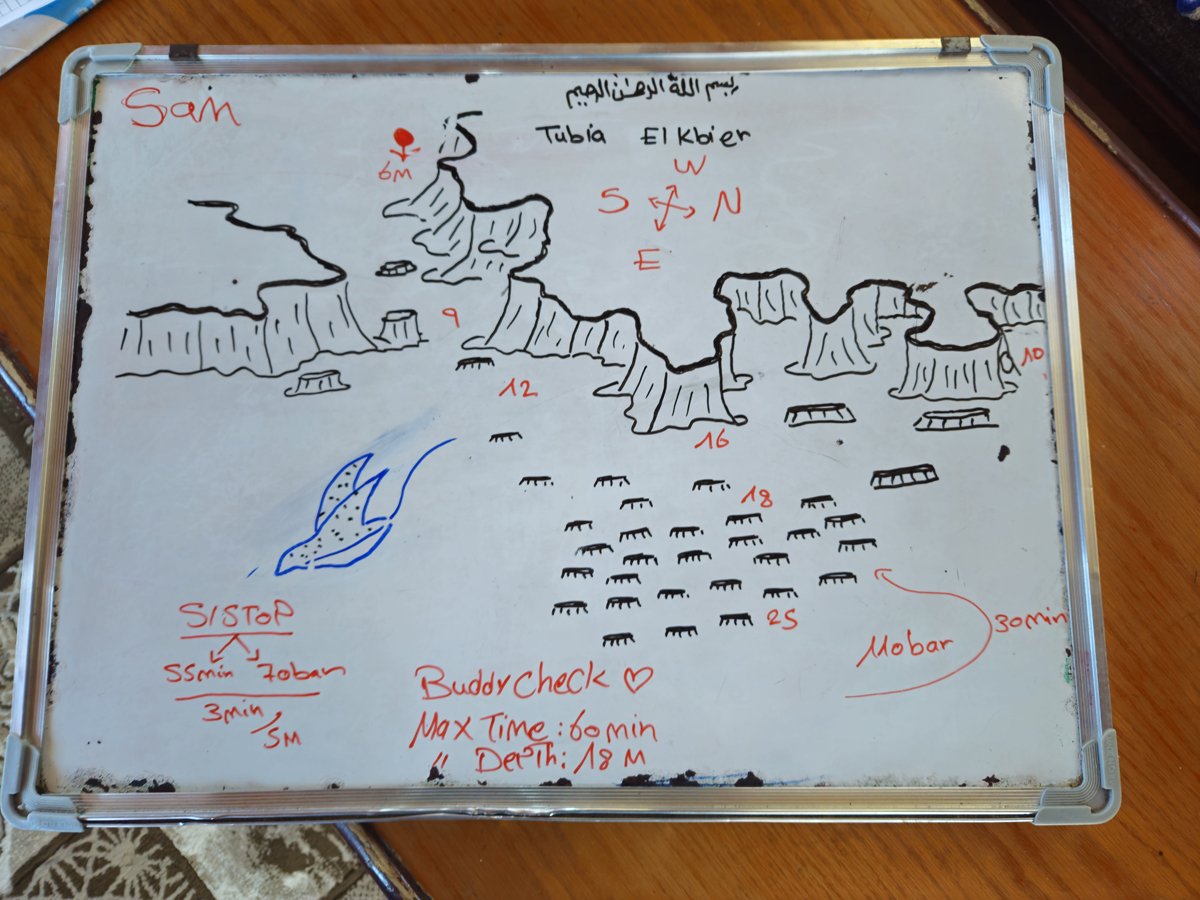 Die Tauchgänge laufen grundsätzlich so ab, dass es ein Briefing mit Unterwasserkarte gibt, dann wird eigenverantwortlich in Buddyteams getaucht. Die Tauchzeit sollte 60 Minuten nicht überschreiten, die Flaschen sollen bei 50bar wieder an Bord sein. Wer nur wenige Tauchgänge hat, taucht obligatorisch mit einem Guide, wer sich mit Guide wohler fühlt, bucht das optional hinzu. Man trägt in die ausgehängten Listen dann einfach ein "G" für "Guided" (geführtes Tauchen) mit ein. Ebenso bestellt man übe rdie Listen und einen kleinen Vermerk hier Nitrox oder andere Wünsche wie eine 15l - Flasche.
