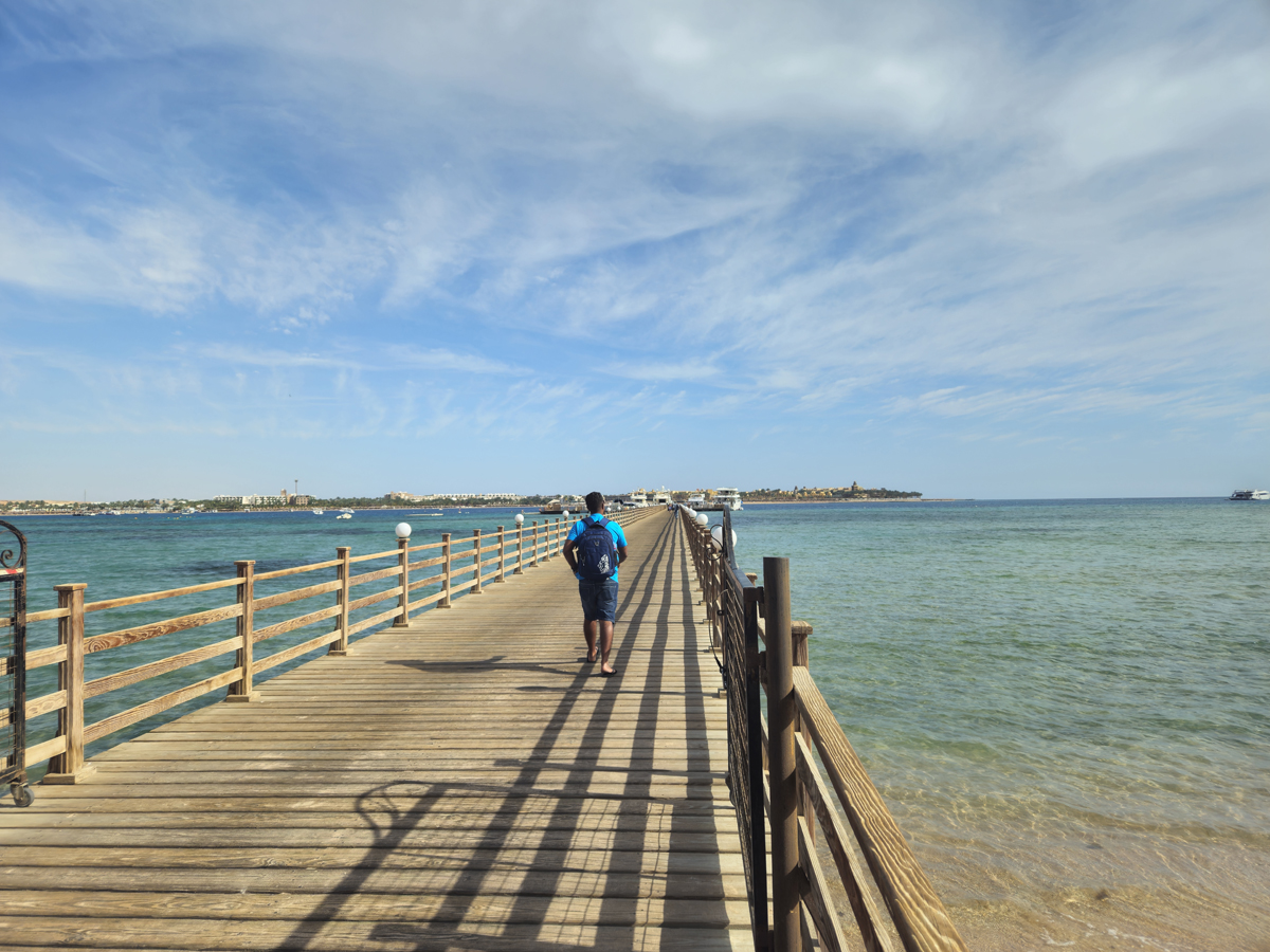 Der erste Tauchgang ist immer, egal wie viel Erfahrung / welches Brevet man mitbringt, ein Checktauchgang. Das gilt für den Einsteiger im ersten Tauchurlaub wie auch für den einheimischen Tauchausbilder. Dieser Tauchgang startet am Hausriff und ist ein ganz normaler Tauchgang mit zwie Übungen (der üblichen Demonstration: Maske ab und (angedeutete) Atmung mit dem Oktopus des Buddys). Viel wichtiger ist aber, dass hier die Möglichkeit besteht, einen ausgiebigen Bleicheck zu machen, so dass das bei den regulären Ausfahrten nicht mehr nötig ist. Der höhere Salzgehalt des Rotes Meers sorgt schnell dafür, sich zu verschätzen. Nebenbei gibt es so auch eine Orientierung übers Hausriff, falls man hier eigenverantwortlich tauchen will.