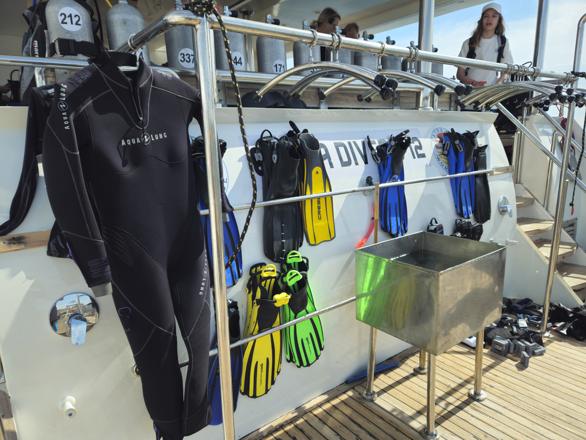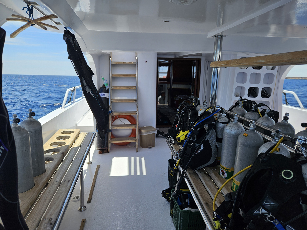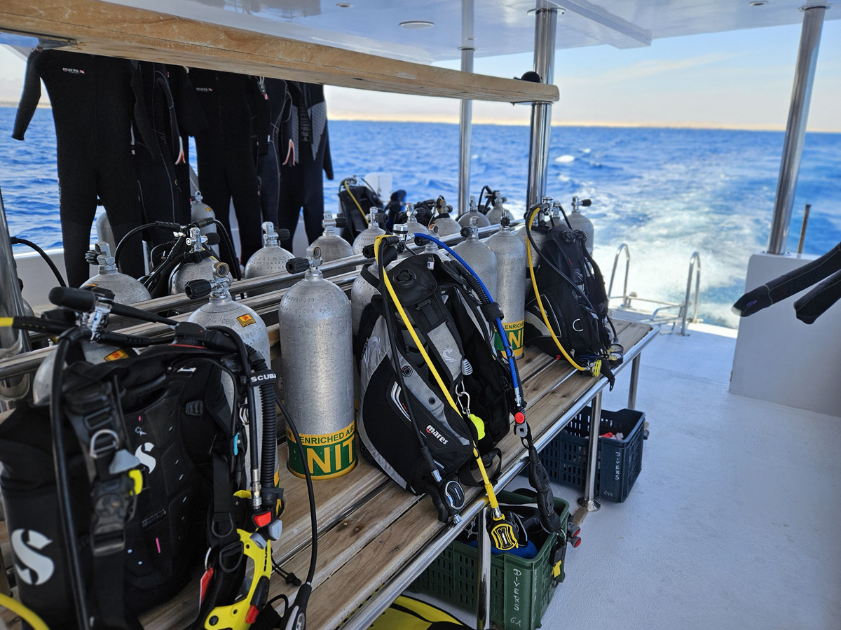 Beworben wir das Tauchen mit Nitrox. Wer bereits zertifiziert ist, bekommt die Nitrox-Füllung ohne Aufpreis. Ansonsten ist es sicher eine gute Idee, über diesen Ergänzungskurs nachzudenken. Ich habe über die Jahre die Erfahrung gemacht, das gerade bei einer Reihe von Wiederholungstauchgängen Nitrox eine sehr gute Option ist. Eigentlich sollte es immer eine 32%-Füllung sein. An allen Tagen habe ich aber meist eine 28%-Füllung gehabt. Gemessen wird auf den Booten.