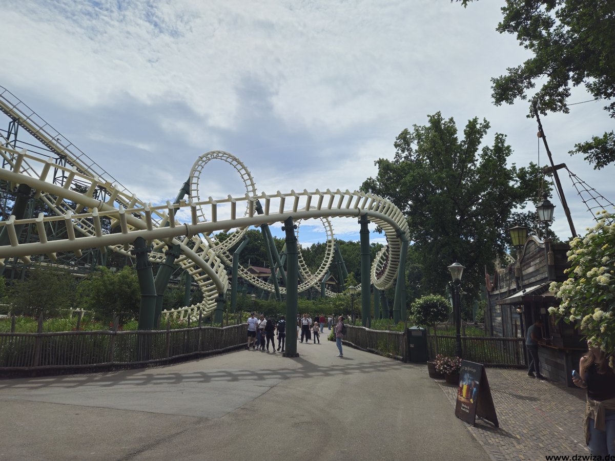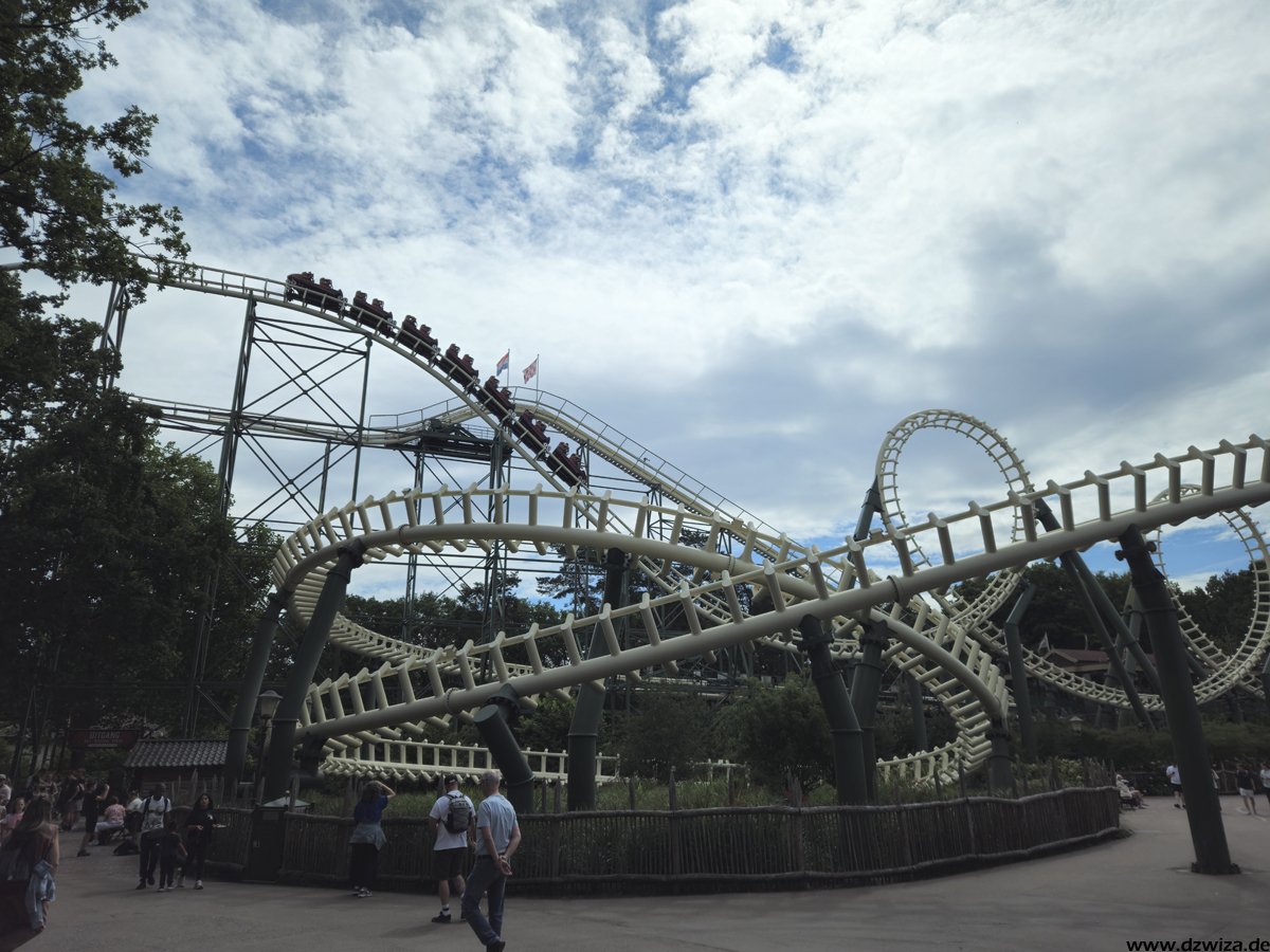 Weiter südlich und zum Abschluß des Rundgangs liegt Anderrijk (Andersland). Neben der Raftinganlage Pirana gibt es einen Dark Ride zum Thema 1001 Nacht: Fata Morgana. Das Spukschloss von damals ist dem eingangs erwähnten Dance Macabre gewichen, die Schweizer Bobbahn hat für Max & Moritz Platz gemacht. Hatte ich im Jahr 2018 geschrieben, dass die Schweizer Bobbahn ganz furchtbar und wie in den letzten Betriebsjahren anfühlte, gab es ein Jahr später dann tatsächlich den Abriss und kurz danach einen Ersatz.