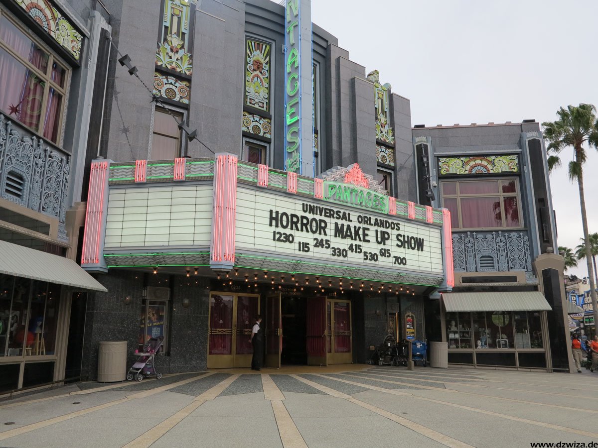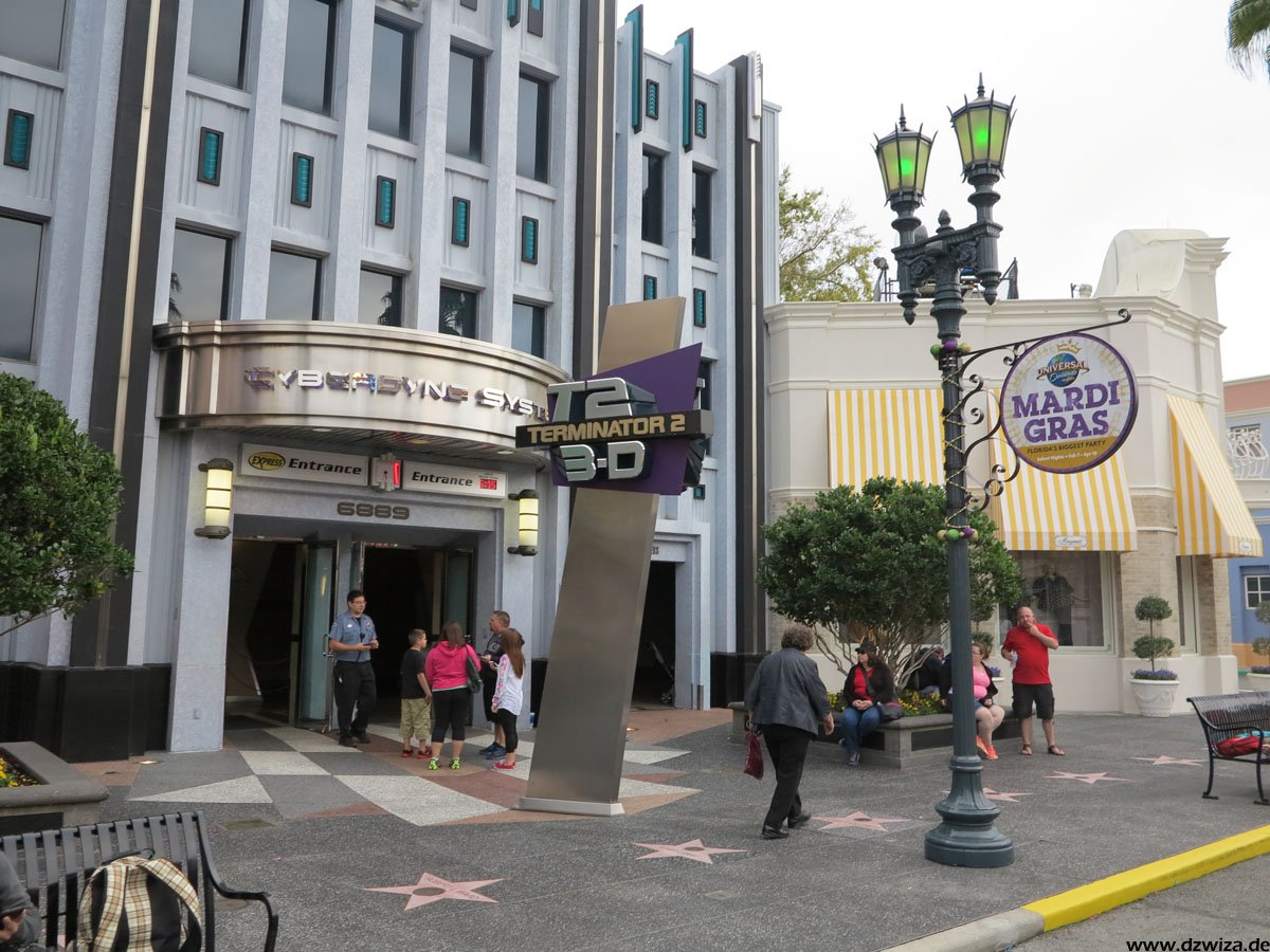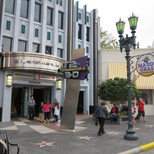 Auf dem Rodeo Drive kommen wir dann sogleich zum Sitz einer Gesellschaft namens Cyberdyne Systems – ja genau, hier dreht es sich um den Terminator. Basierend auf dem erfolgreichsten Teil der Reihe, Terminator 2, wurde die Geschichte weitergeschrieben und in einer 3D – Fassung präsentiert. Dabei handelt es sich aber nicht um einen der normalen 3D-Filme, hier werden Filmszenen und Live-Schauspiel sowie Live-Special-Effects vermischt. Der Übergang von Film zu Schauspiel und umgekehrt ist dabei verblüffend fließend. Gleich nebenan, im Stile eines alten Kinos, ist die Horror Make-Up-Show zu finden. Auch wenn es hier um Spezialeffekte im Horrorfilm gehen mag: Es ist keineswegs wirklich gruselig, sondern sehr unterhaltsam und durchaus witzig präsentiert. Für diese Live-Show sollte man aber gute Englisch-Kenntnisse mitbringen.