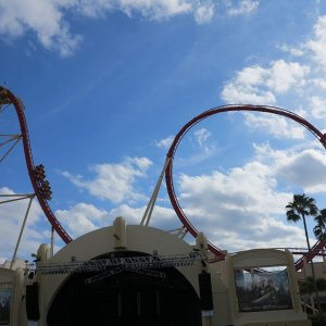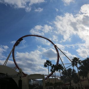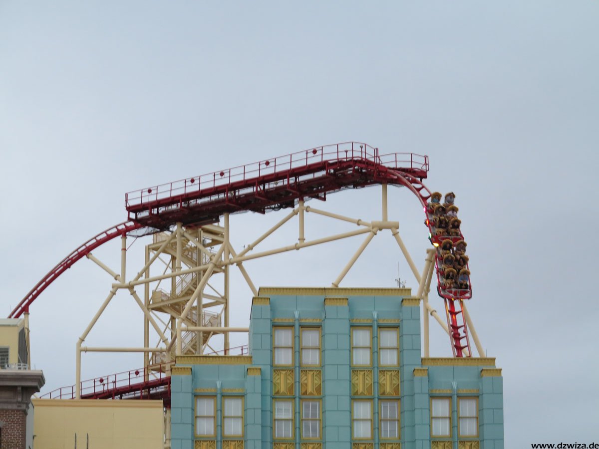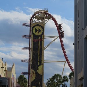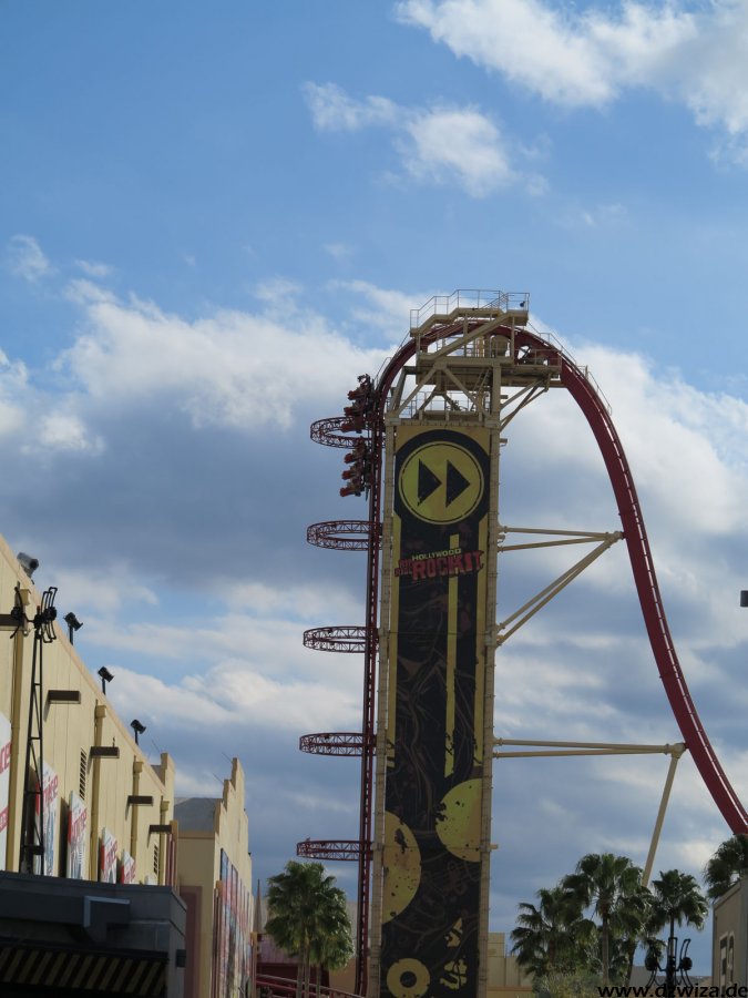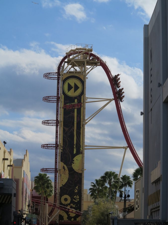 Transformers 3D ist eine Großattraktion mit einer beeindruckenden Technik. Ich muss aber zugeben, dass ich der Thematik und der Storyline ziemlich wenig abgewinnen kann. Trotzdem: Für eine Fahrt „überraschen lassen und stauen“ reichte es. Hollywood Rip Ride Rockit ist eine Großachterbahn, die weithin sichtbar ist. Neben dem Senkrechtlift und einer sehr steilen Abfahrt kann an jedem Platz vor der Fahrt aus einem großen Musikkatalog ein Stück gewählt werden, dass dann über die Bordlautsprecher gespielt wird.