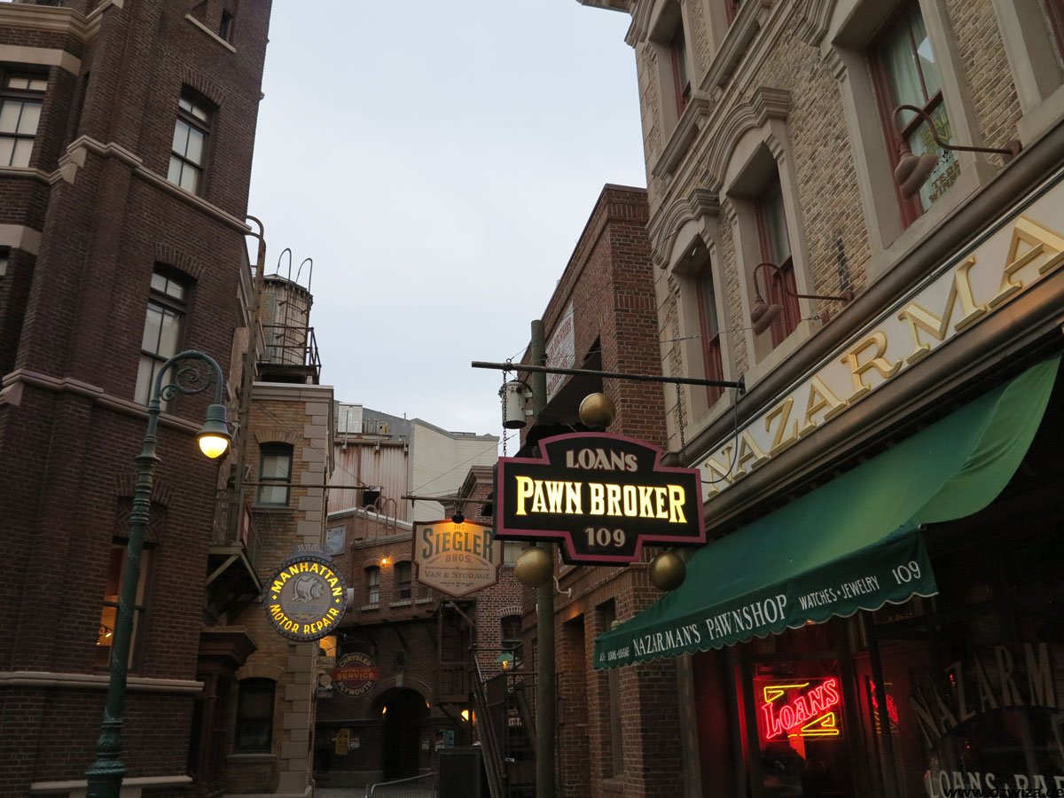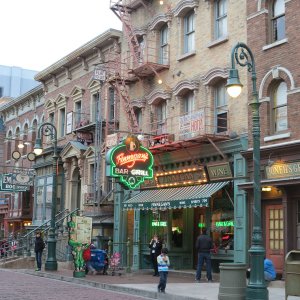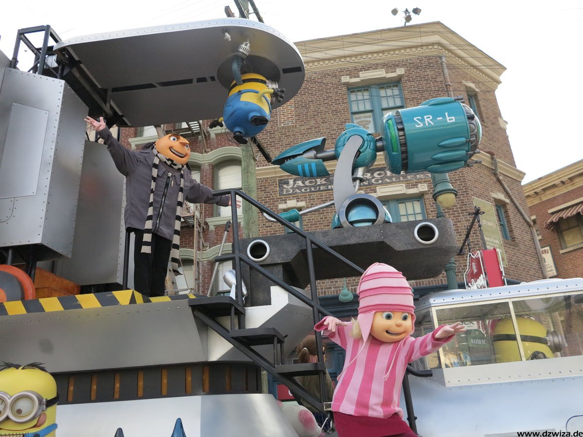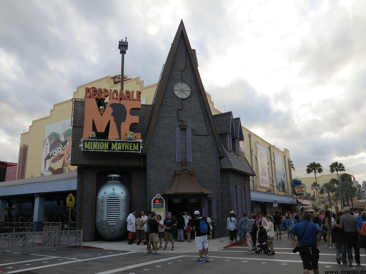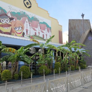 Wenn wir nun in das Labyrinth der Filmsets und kleines Gassen und Straßenzüge eintauchen, gelangen wir zu weiteren Attraktionen. Imposant ist dabei Revenge of the Mummy. Die „Mumien“-Filme waren schon früh große Universal-Hits. Diese Attraktion ist natürlich an die Neuauflage angelehnt. Bereits die Gestaltung des Wartebereiches als Museum, Filmset, Tempel und Katakomben ist beeindruckend. Bei der Fahrt handelt es sich um eine Achterbahn mit zahlreichen Spezialeffekten, deren Details selbstverständlich nicht näher verraten werden. Zur Eröffnung der Studios geisterte hier übrigens nicht die Mumie durch die Kulissen, der Besucher sah sich vielmehr mit King Kong konfrontiert. Ein paar kleine Attraktionen gibt es in diesem Bereich: Twister erlaubt es, einen Wirbelsturm hautnah zu erleben. Shrek 4-D ist ein 4D-Film und Despicable Me: Minion Mayhem findet sich zwar in einem kleinen, unscheinbaren Gebäude, ist aber eine sehr beliebte Attraktionen mit sehr langen Wartezeiten: Ein 3D-Film auf einer sich leicht bewegenden Plattform, bei der neuen Minions rekrutiert werden sollen – natürlich die Besucher. Wie immer lohnt auch hier ein Blick auf die Details: Die Bepflanzung am Gebäude besteht aus Bananenstauden. Das Gebäude hatte früher übrigens Attraktionen zu den Cartoons von Hanna-Barbera und später zu Jimmy Neutron, bevor die Minions einzogen.