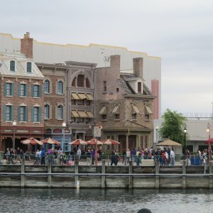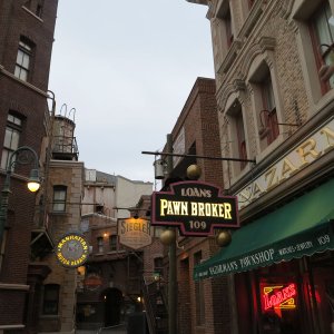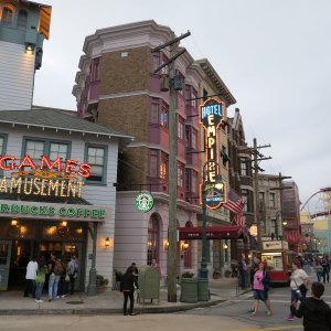 An der nordöstlichen Ecke des Sees, früher lauerte hier der Weiße Hai, stossen wir nunmehr auf einen Straßenzug des alten Londons. Hier verbirgt sich der Harry Potter – Themenbereich. Darüber folgt ein separater Bericht.