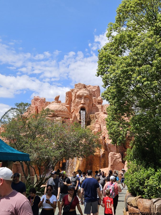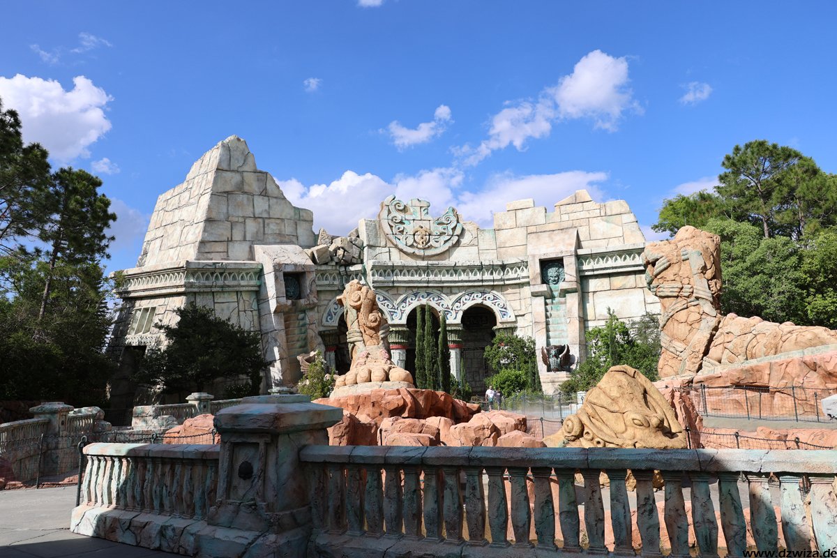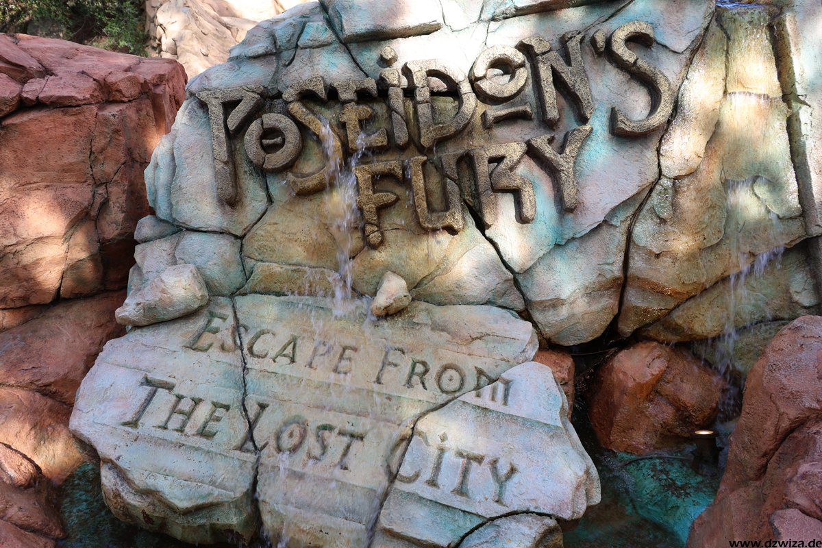 Mitte April konnte ich noch Poseidons Fury sehen. Inzwischen ist die Attraktion bekanntlich geschlossen und wir können gespannt sein, was hier hinkommen wird. Die Fläche ist riesig, insbesondere zusammen mit dem Theater nebenan, dass ja schon einige Zeit nicht mehr regelmäsig bespielt wurde. Das mystische, IP/lizenzfreie Thema passte eigentlich sehr gut in den Park, Poseions Fury war ein guter Kontrast zu den vielen Fahrten mit Bildschirmen und Leinwänden.