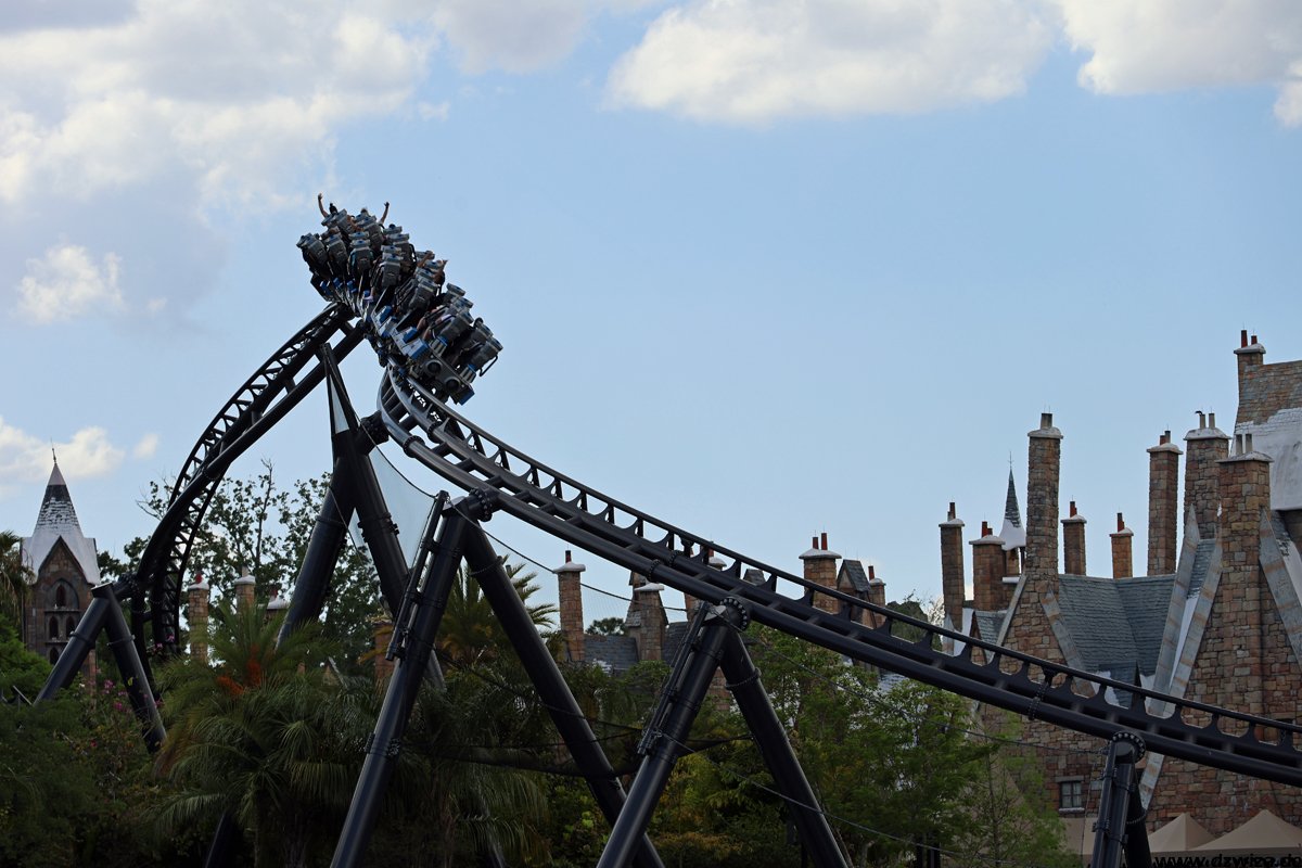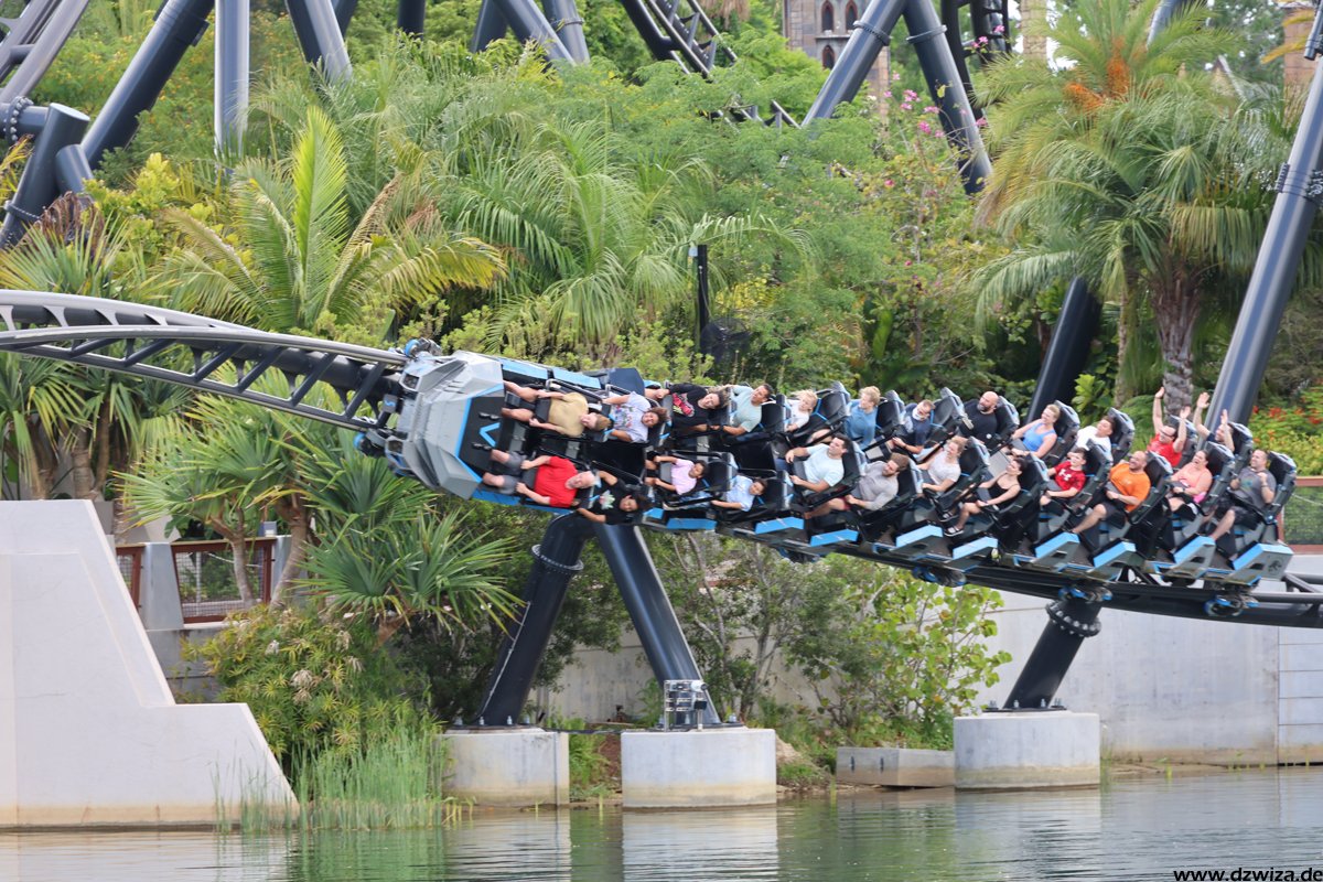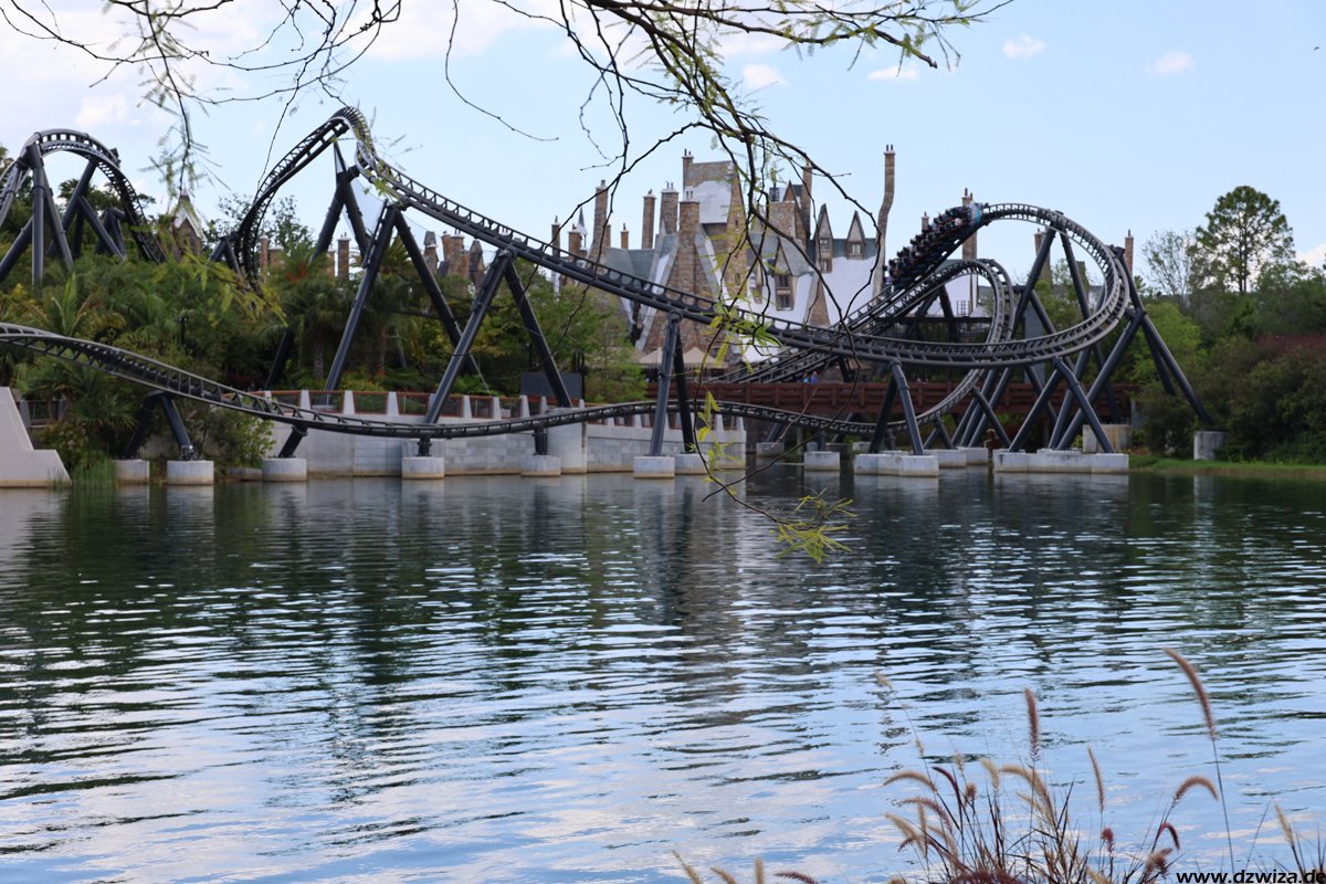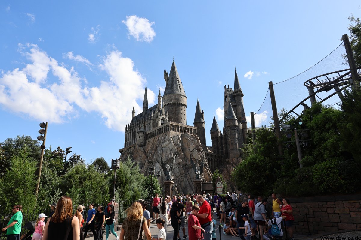 In diesem Teil geht es nach Hogsmeade. Ich glaube, nach so vielen Jahren muss man nicht mehr viele Worte verlieren. Der Themenbereich ist immer noch Spitzenklasse im Bereich der Immersion. Forbitten Journey, die Kuka-Fahrt, ist für mich ein absolutes Highlight. Dies und natürlich auch Hagrid will man gar nicht zu sehr im Detail beschreiben, um die Spoilergefahr nicht zu hoch zu setzen. Bei der Journey ist die ganze Warteschlange sehr gut gemachter Teil der Attraktion. Es gibt eine Single-Rider-Line, die sehr kurz ist und bei der man meist sehr schnell zu einer Fahrt kommt, aber fast die ganze Themenshow überspringt. Also besser erst ab Fahrt Nr. 2 nutzen. Bei Hagrid hatte temporär eine vorher nicht angekündigte Single-Rider-Line offen, die aber keinerlei Zeitgewinn brachte, überwiegend in der heißen Sonne vor der Burg stand (im wörtlichen Sinne) und an den Showelementen der regulären Queue vorbeiführte. Die Position auf dem Motorrad fand ich spannender als im Beiwagen. Fahren muss man natürlich beides.