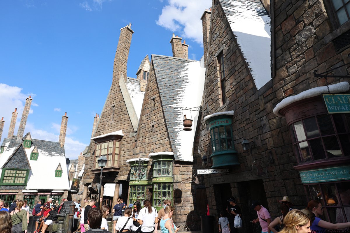 Bemerkenswert finde ich, wie es Universal gelingt, billige Plastikstöcke für exorbitante Preise als Zauberstäbe (Wands) zu verkaufen und sich Menschen jeden Alters vor Schaufensterscheiben stellen, Handbewegungen machen und Aktionen in den Fenstern herbei“zaubern“. Es zeigt, wie gut das versinken in einer Themenwelt funktioniert.