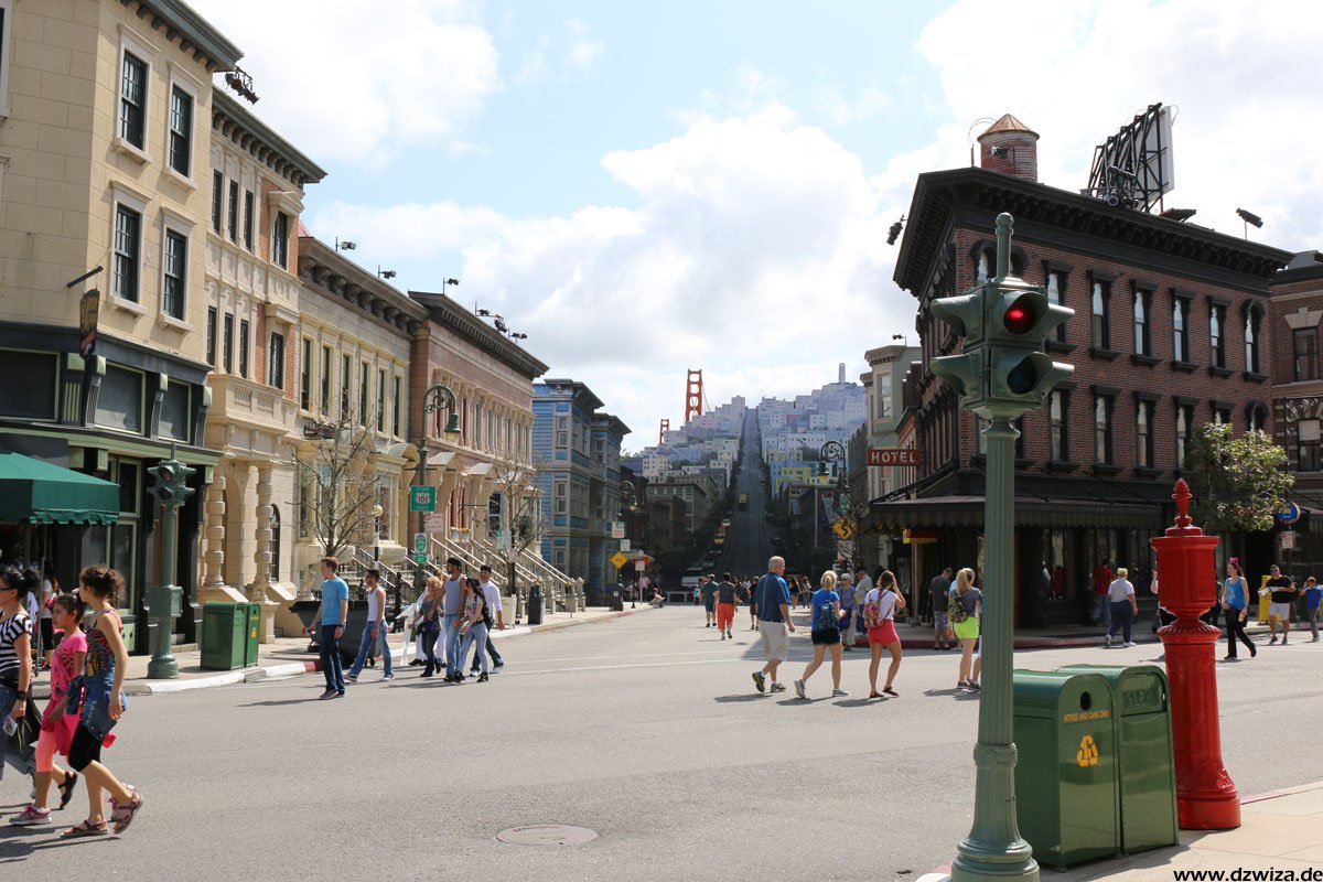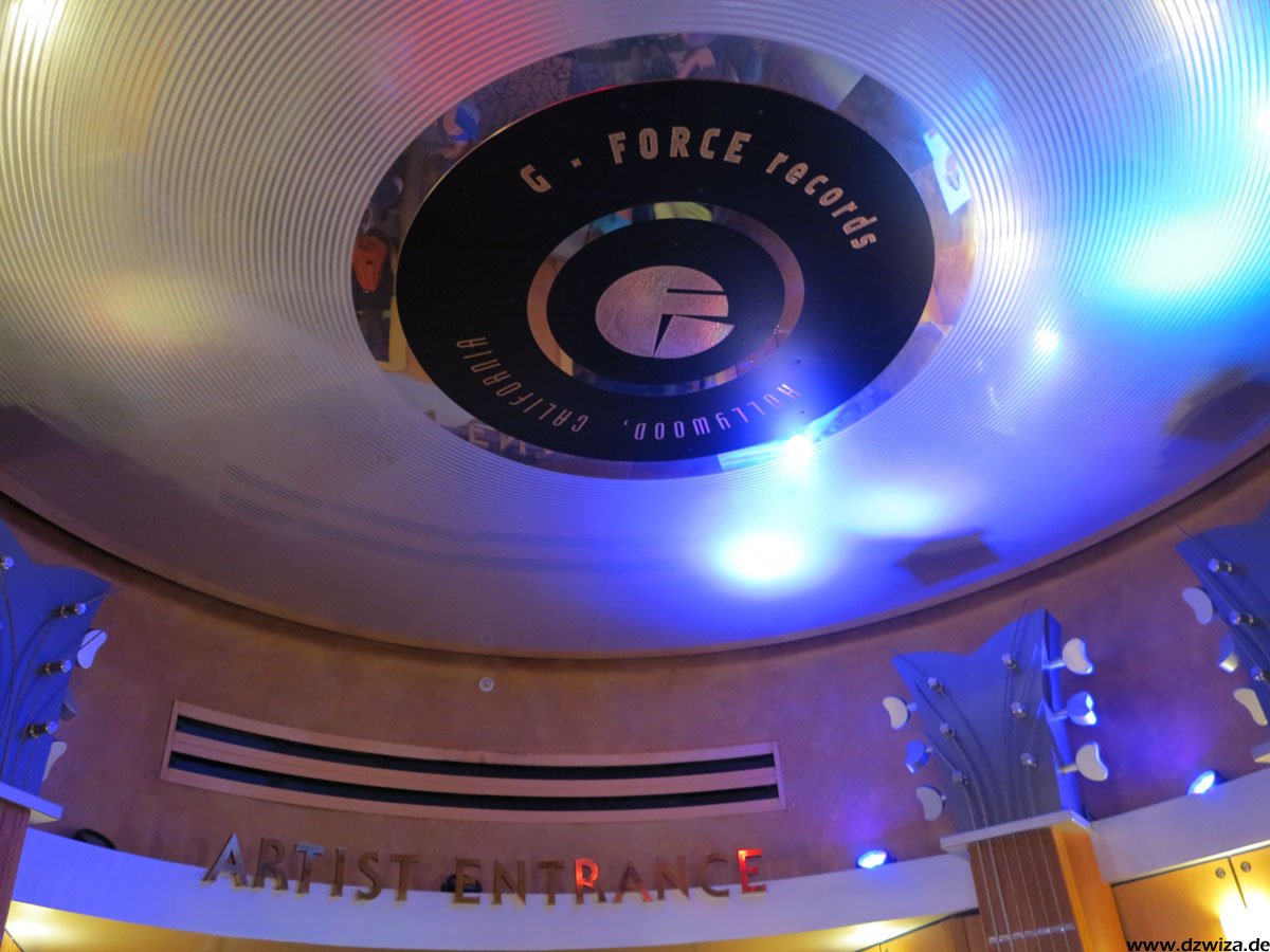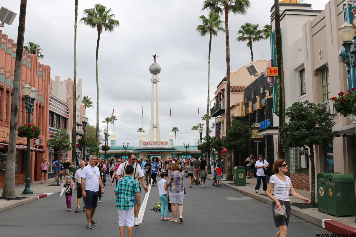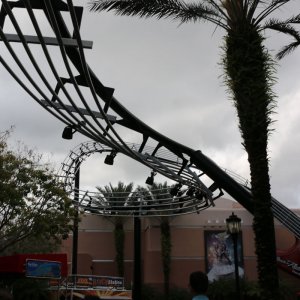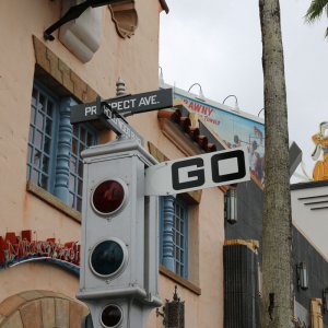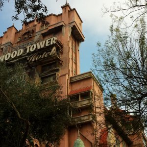 Vor dem Theater rechts zweigt der Sunset Boulevard ab. Der Weg ist leider als Sackgasse angelegt, so dass es hier immer sehr voll erscheint. Folgt man dem Sunset Boulevard, kommt man zunächst zum Rock'n'Roller Coaster. Aerosmith sind auf dem Weg zu einem Auftritt und als Fan darf man in einer besonders langen Strechlimousine (der Achterbahn) vom Studio zur Bühne mitfahren. Die Fahrt ist komplett Indoor und im Dunkeln. Man startet per Abschuss aus dem Stand, dann folgen für Disney eher selten, eine Reihe von Überkopfelementen. Die Bahn hat einen Single-Rider Eingang, mit dem man unter Umständen viel Zeit einsparen kann. Direkt nebenan erhebt sich der Tower of Terror, jenes Hotel mit einer an die Serie Twilight Zone angelehnten Storyline, das gewisse Probleme mit seinen Fahrstühlen hat. Die stützen gerne mal ab - mit den Fahrgästen. Es handelt sich aber nicht um einen simplen Freefall-Tower, sondern um die wohl komplexeste Attraktion dieser Art. Wer das Exemplar aus Paris kennt, erlebt hier noch etwas mehr, denn der sog. 5-Dimensison-Room ist nur hier zu finden. Man sollte sich auf lange Wartezeiten einstellen. Für das Abendprogramm gibt es am Sunset Boulevard noch ein Theater, dass 10.000 Personen fasst und ein- bis zweimal täglich Fantasmic! aufführt, eine absolut sehenswerte Show. Für Sitzplätze darf man aber gerne mal 60-120 Minuten vorher da sein.