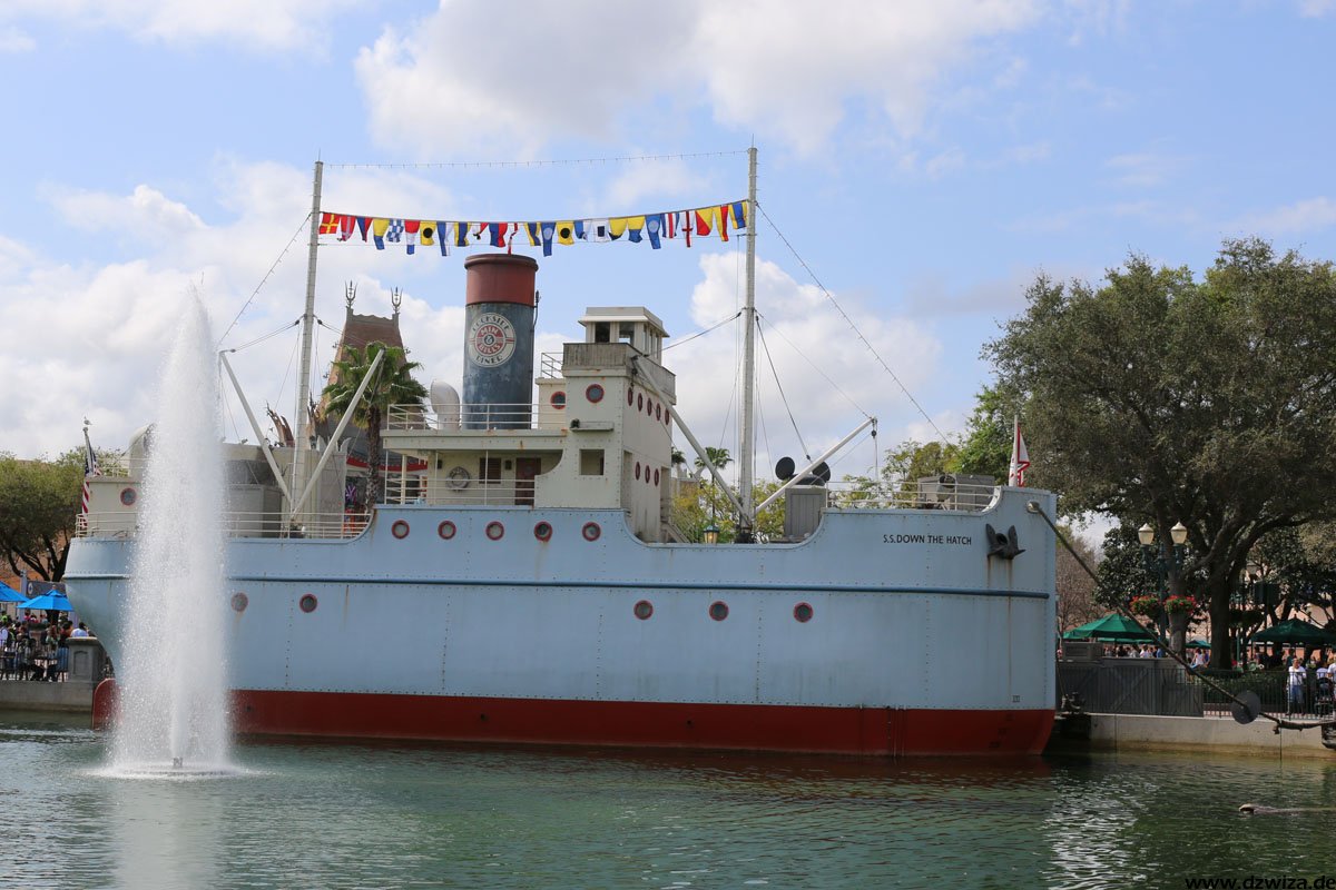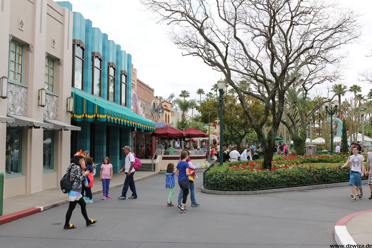 Verglichen mit dem Magic Kingdom sind die im Park Wege erfreulich kurz: Die Attraktionen sind ungefähr auf der Fläche konzentiert, die Main Street, Frontierland und Tomorrowland zusammen einnehmen. Schauen wir mal rein.