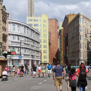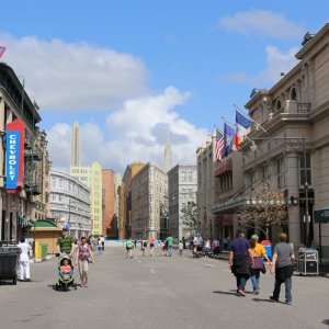 Der Bereich Streets of America schließt sich an, hier findet man eine Reihe von Filmsets und die Show der Muppets, Muppet Vision 3D. Besonders die Preshow sollte man hier nicht verpassen, da sie ausgesprochen witzig ist. Nicht weit entfernt kommt man zu Star Tours, noch so einem Disney-Klassiker. Eine Simulatorfahrt zum Star Wars - Thema, die inzwischen ordentlich aktualisiert wurde und in 3D präsentiert wird. Selbst wenn man diese Fahrt öfter macht, ist das Erlebnis unterschiedlich, da der Anfang und das Ende der Fahrt bei jeder Tour ausgetauscht werden und so insgesamt rund 50 verschiedene Kombinationen möglich sind. Welche man erlebt, erfährt man vorher natürlich nicht.