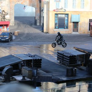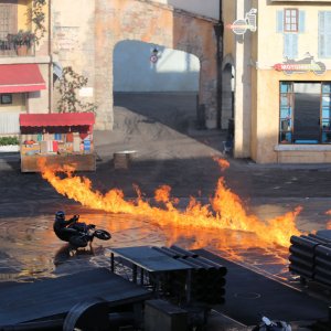 Hinter dem Chinese Theater ist zunächst der Animation Courtyard zu finden. Folgt man dann dem Weg, kommt man in die Pixar Studios. Die Hauptattraktion hier ist Toy Story Midway Mania, die ebenfalls sehr lange Wartezeiten produzieren kann. Wer aus dem deutschen Phantasialand "Maus au Chocolat" kennt, hat eine grobe Vorstellung davon, welche Technik hier verbaut wurde und was einen hier erwartet. Parkscout meint, dass die deutsche Version sogar noch besser als dieser Darkride sei. Verläßt man den Pixar-Studio-Bereich, gelangt man zu dem großen Theater (3.000 Personen), in dem die Stuntshow Lights, Motos, Action aufgeführt wird. Die Show ist ziemlich sehenswert und eine der wenigen Attraktionen, die es zuerst in Paris gab und die dann in das Walt Disney World Resort übernommen wurden.