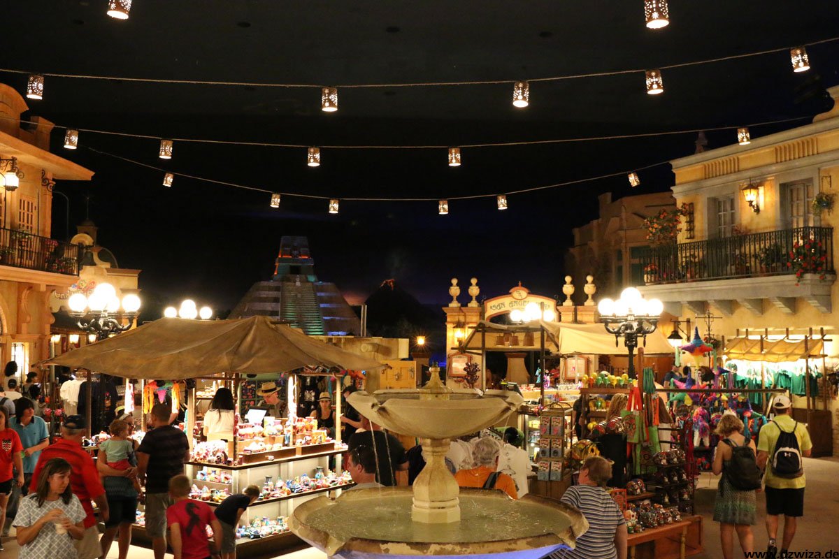 Mexiko: Eine große Pyramide beinhaltet neben den schon genannten Elementen eine Bootsfahrt, die „Gran Fiesta Tour“, eine nette kleine Fahrt für Zwischendurch, wenn den Wartezeiten verträglich sind.
