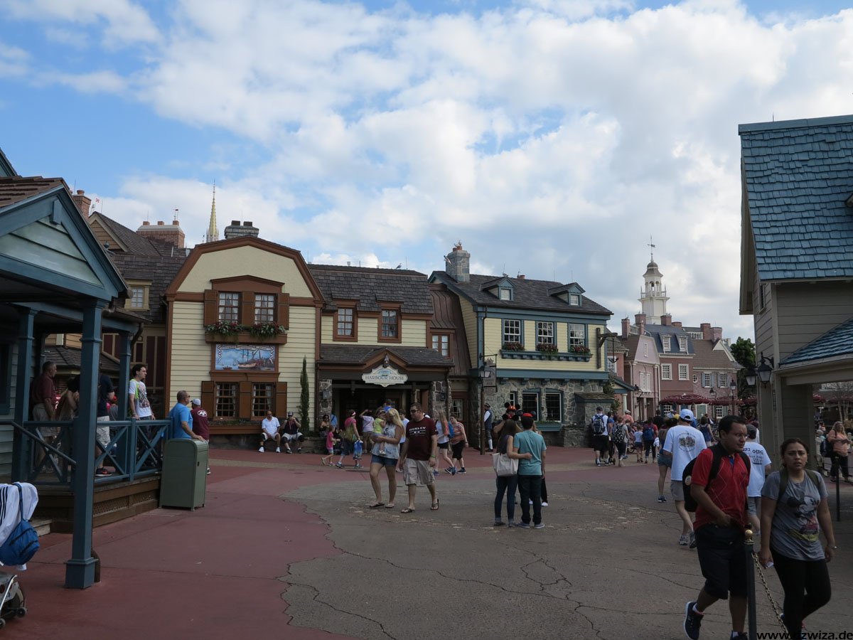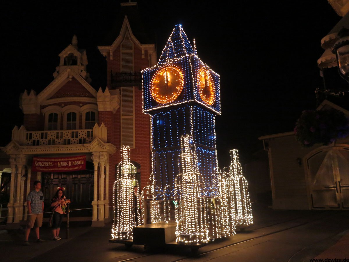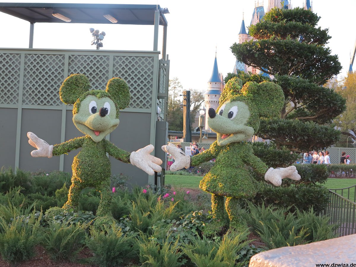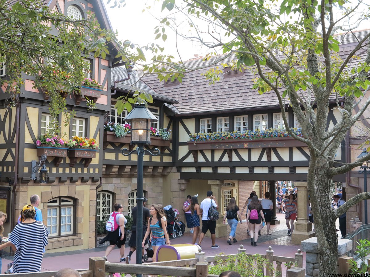 Beginnen wir mit dem Rundgang auf der Main Street: Hier dominieren Geschäfte, Kulissen und Street Entertainment. Die Main Street führt zu dem schon erwähnten zentralen Platz, wo sich alles auf die verschiedenen Bereiche verteilt: Direkt vor dem großen Schloss, dass wohl wirklich jeder kennt: Cinderellas Castle.