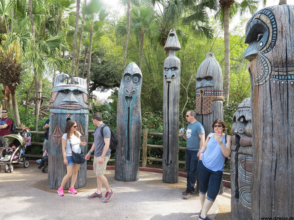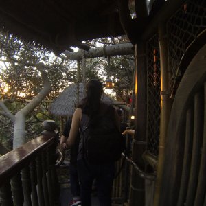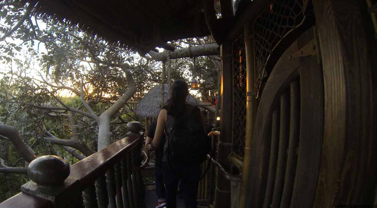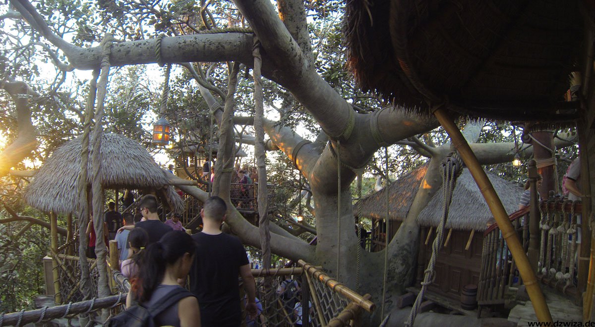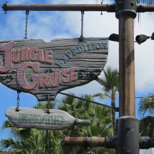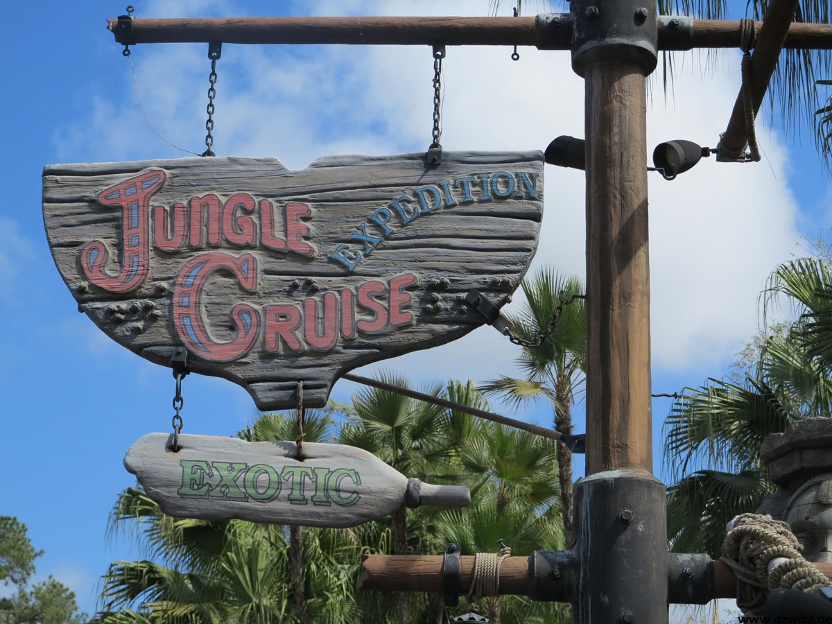 Das Adventureland präsentiert zahlreiche Klassiker: Das begehbare Baumhaus einer berühmten Schweizer Familie und "Pirates Of The Caribbean" (die Attraktion ist älter als die Filmreihe, sie diente sogar als grobe Vorlage für das Kinoabenteuer) sind hier zu erwähnen. Eine Besonderheit ist sicherlich der "Jungle Cruise": Mit Booten geht es durch eine Dschungellandschaft, vorbei an Animatronics. Was daran besonders ist? Jede Fahrt wird von einem Tourguide begleitet, der live mit den Mitreisenden agiert und auf die Tierbegegnungen eingeht. Damit kann jede Fahrt etwas anders ausfallen... Besonders am frühen Abend in der Dämmerung ist die Fahrt sehr nett.