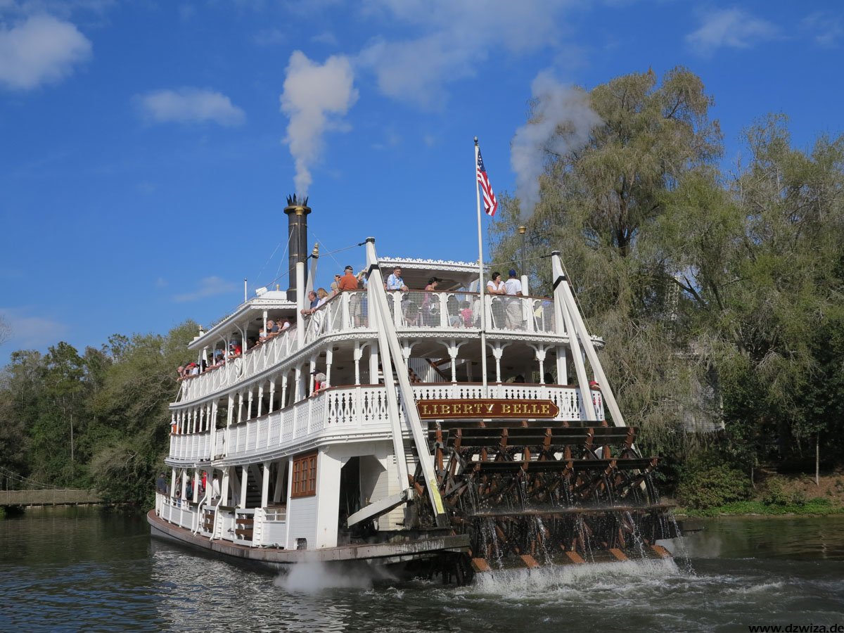 Weiter im Uhrzeigersinn kommt man zum Liberty Square. Auf einem künstlichen Flusslauf im Nordost-Teil des Parks kann man hier mit Schaufelraddampfern fahren. Die Hauptattraktion ist aber Haunted Mansion, ein altes Herrenhaus, in dem nicht mehr so lebendige Gestalten ihr Unwesen treiben.