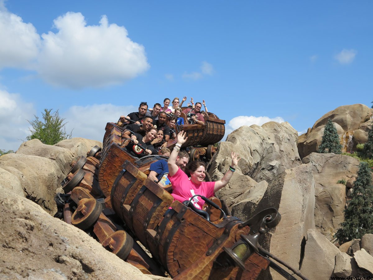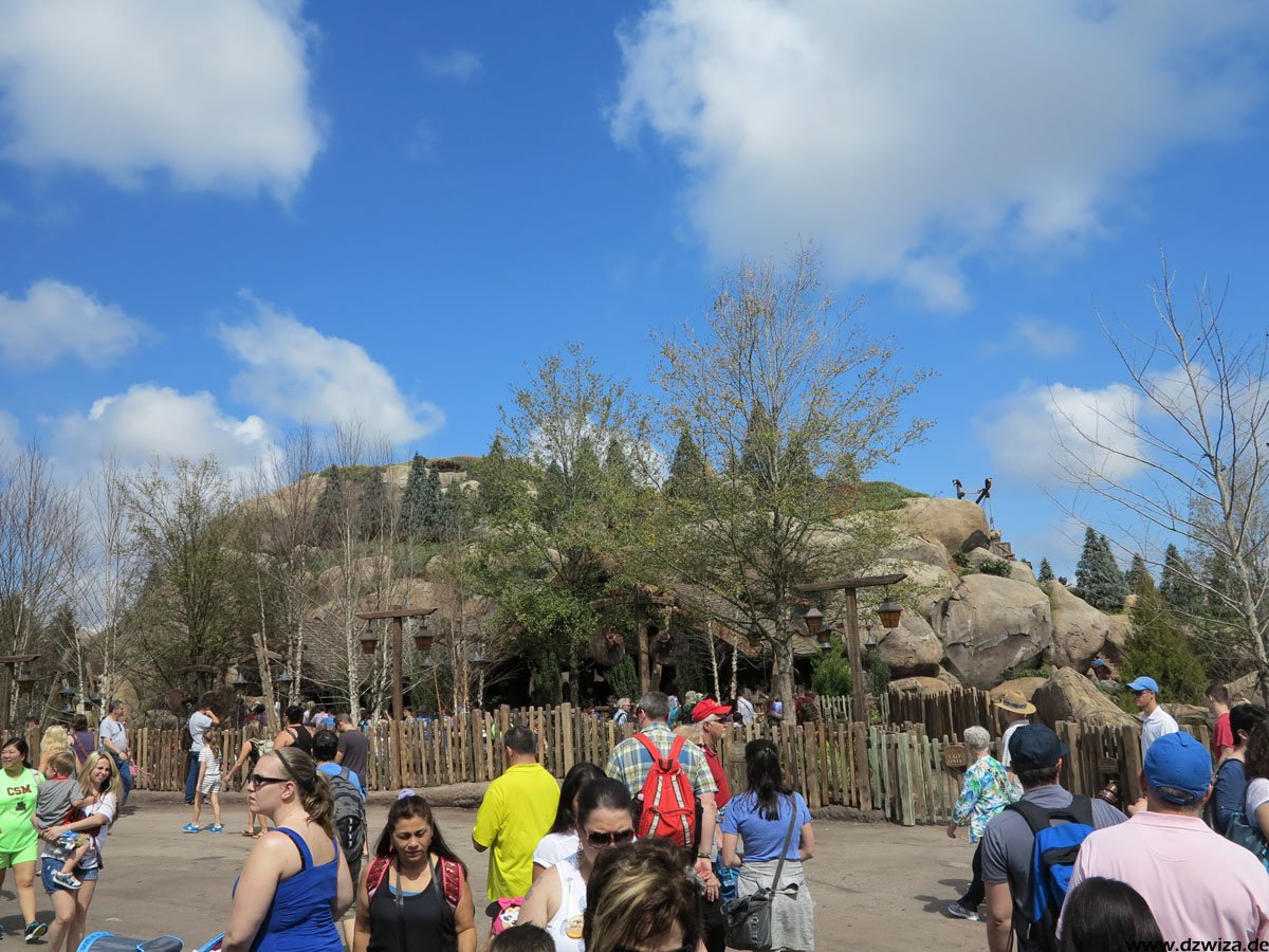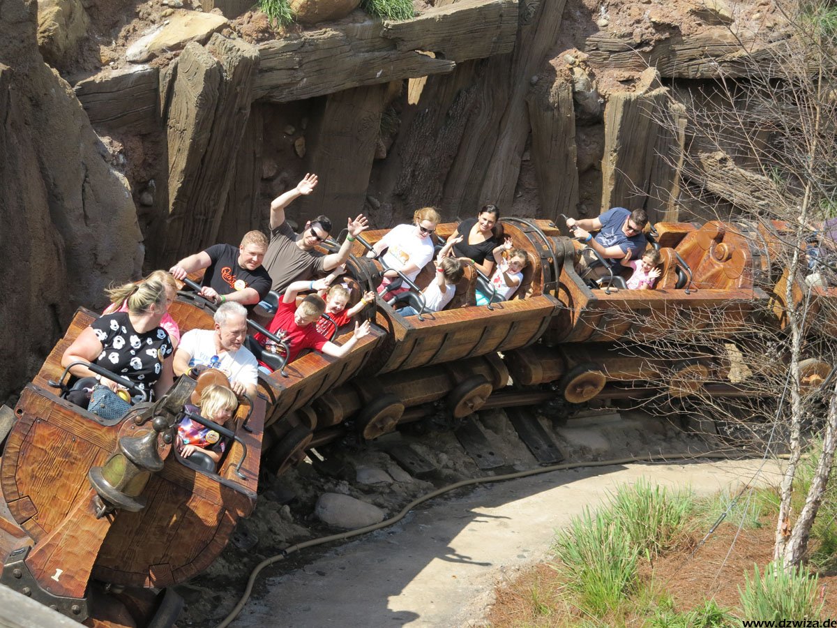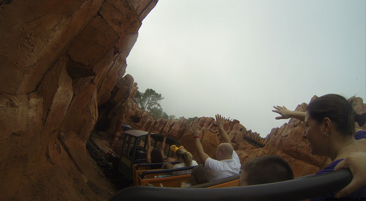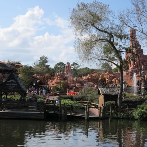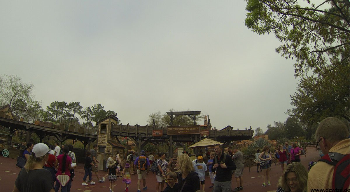 Im angrenzenden Frontierland wird es nass: Splash Mountain ist die dortige Wildwasserbahn, die eine sehr detaillierte thematische Gestaltung hat. Der letzte große Sturz ist der einzige Fahrabschnitt, der einsehbar ist und durchaus reichlich nass daherkommt. Mit kleinen Fähren kommt man auf Tom Sawyers Island, einer Insel, die man zu Fuß erkunden kann. Hier ist es meist etwas ruhiger. Gut, um mal ein paar Minuten abzuschalten. Und dann ist das noch die zweite große Hauptattraktion: Big Thunder Mountain Railroad. Eine Achterbahn von sehr großen Ausmaßen in Bezug auf die verbaute Fläche. Die Fahrt selbst ist absolut familientauglich.
