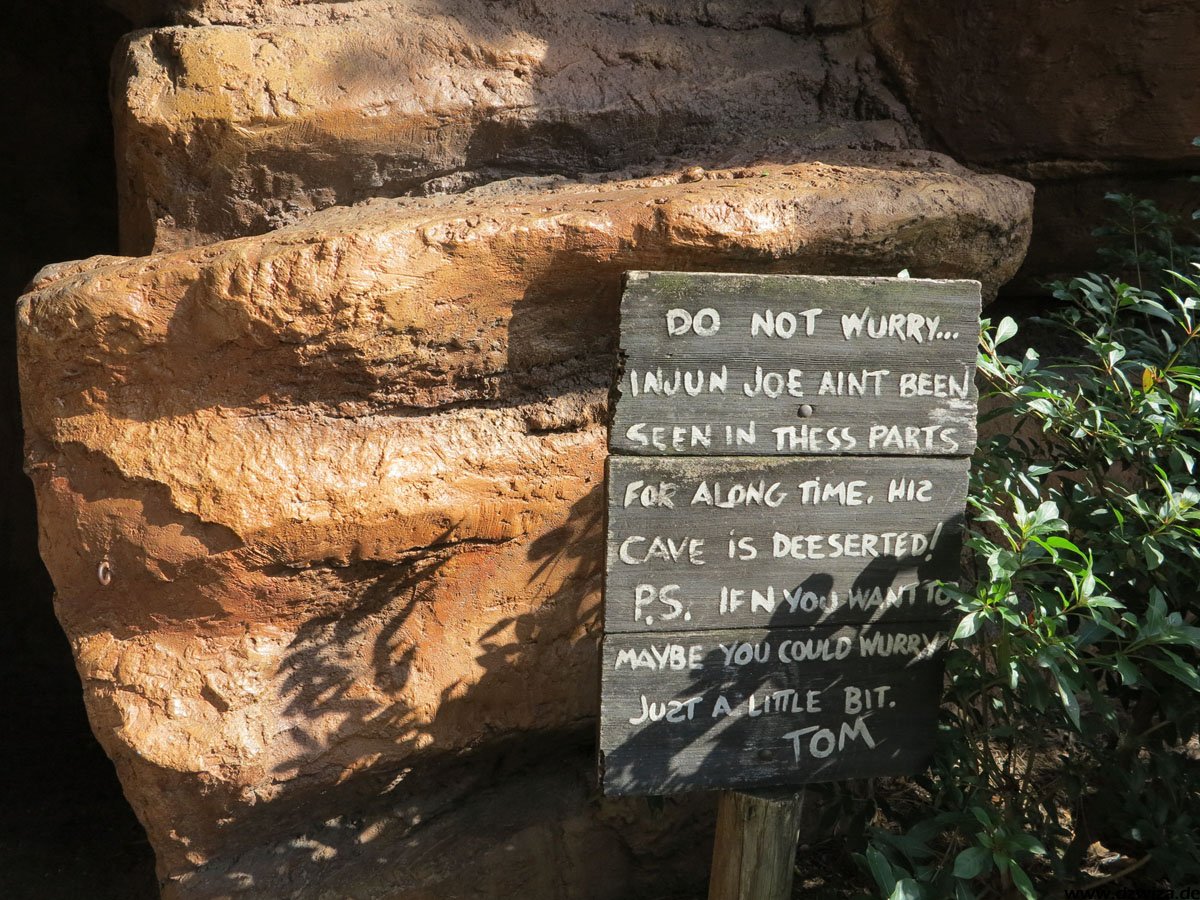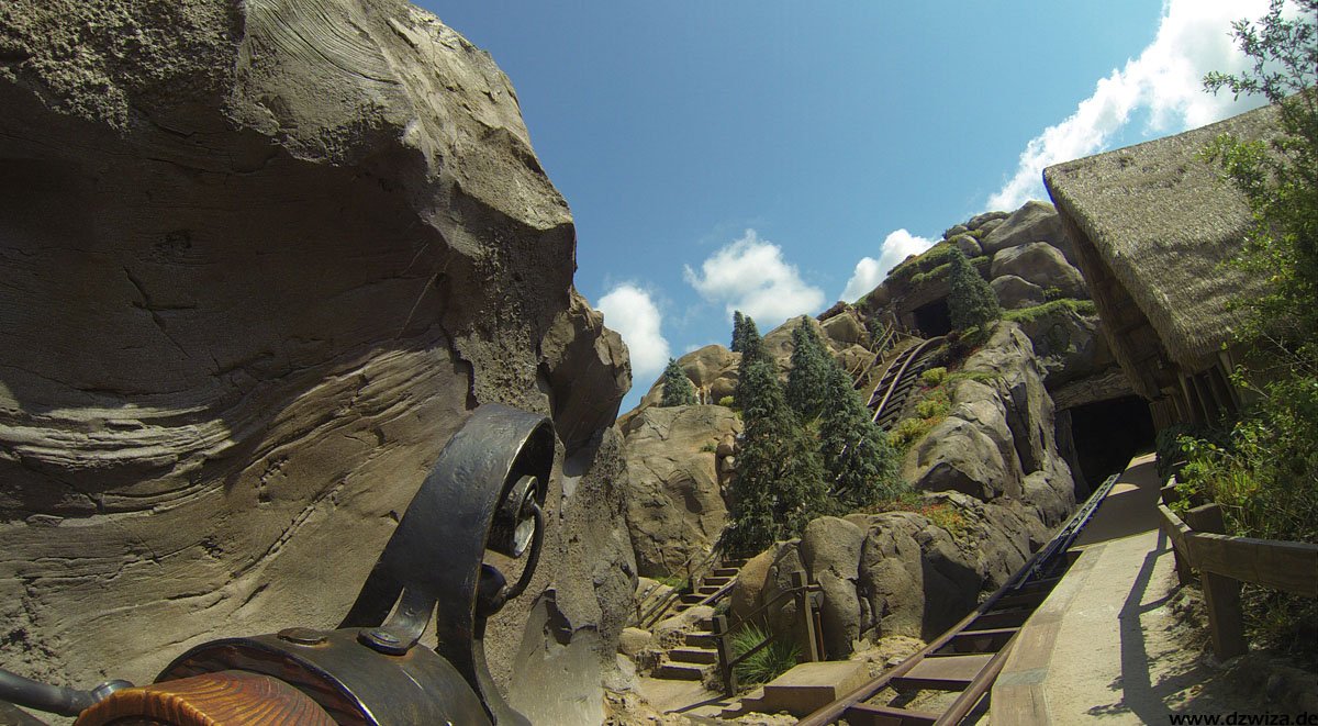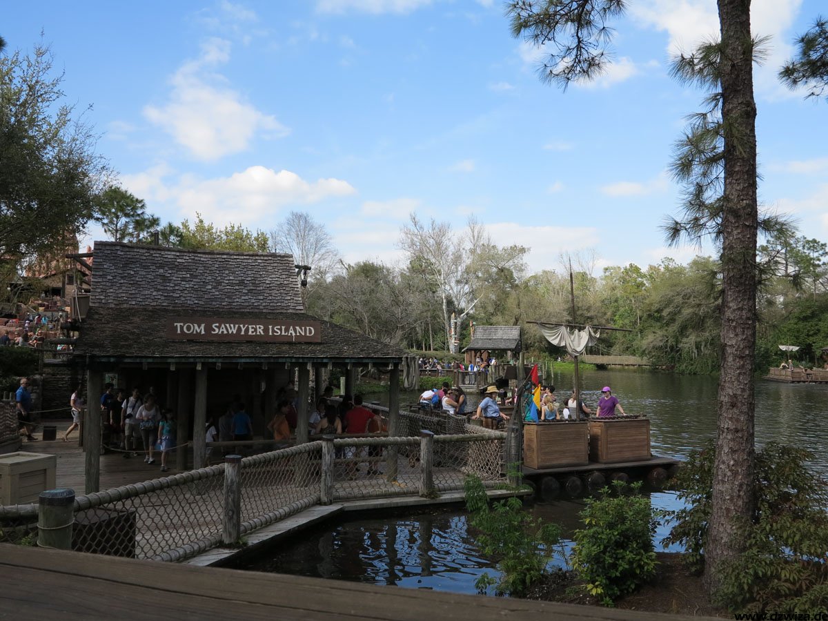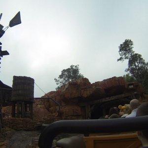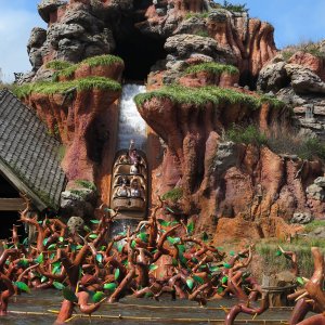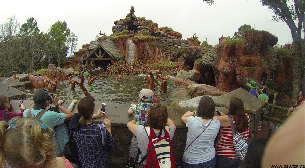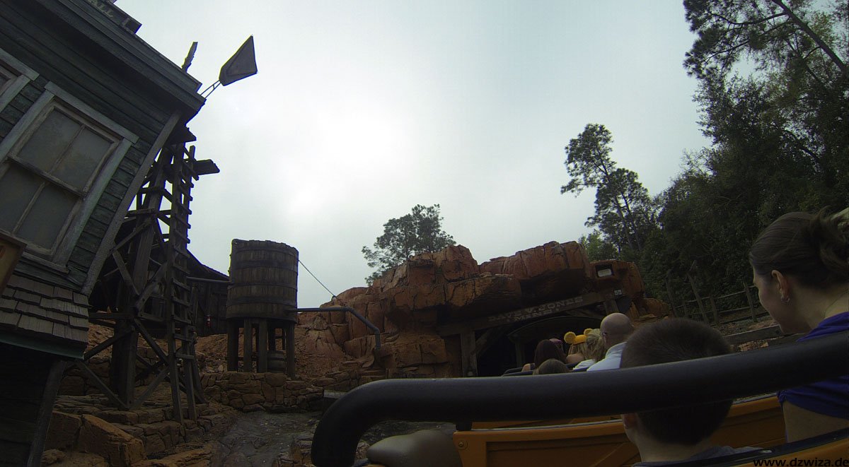 Im angrenzenden Frontierland wird es nass: Splash Mountain ist die dortige Wildwasserbahn, die eine sehr detaillierte thematische Gestaltung hat. Der letzte große Sturz ist der einzige Fahrabschnitt, der einsehbar ist und durchaus reichlich nass daherkommt. Mit kleinen Fähren kommt man auf Tom Sawyers Island, einer Insel, die man zu Fuß erkunden kann. Hier ist es meist etwas ruhiger. Gut, um mal ein paar Minuten abzuschalten. Und dann ist das noch die zweite große Hauptattraktion: Big Thunder Mountain Railroad. Eine Achterbahn von sehr großen Ausmaßen in Bezug auf die verbaute Fläche. Die Fahrt selbst ist absolut familientauglich.