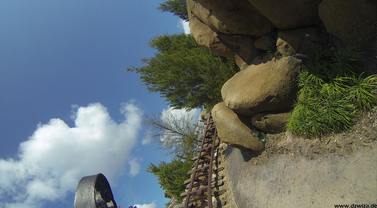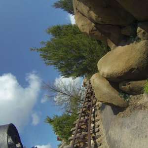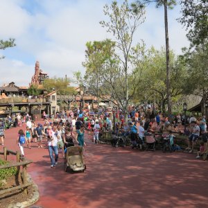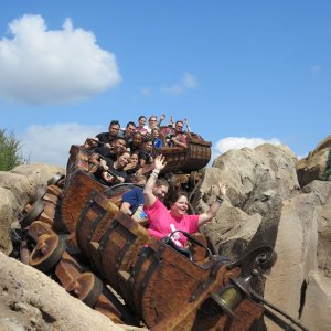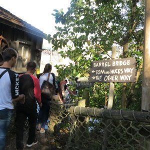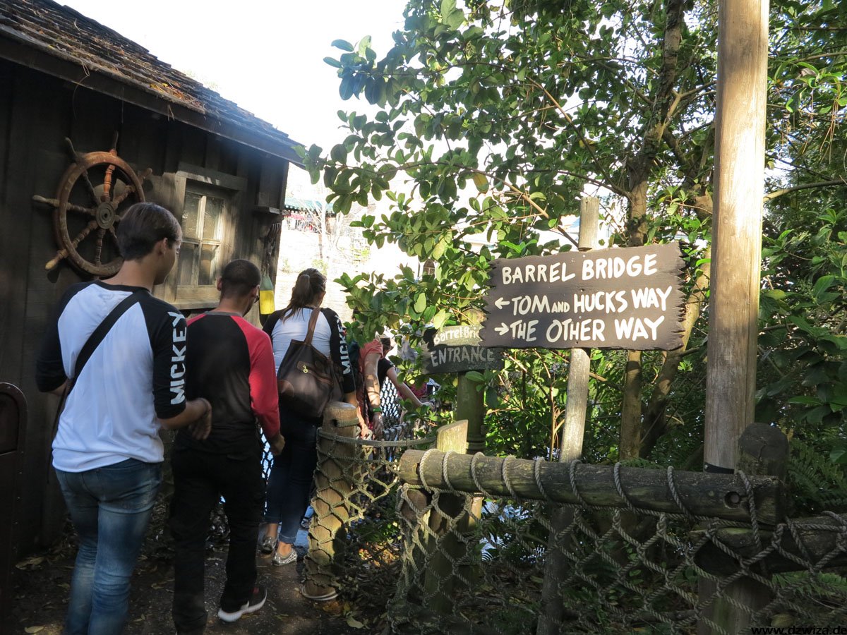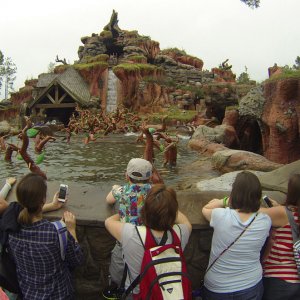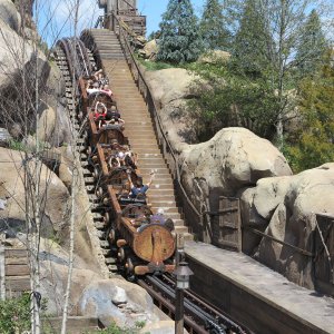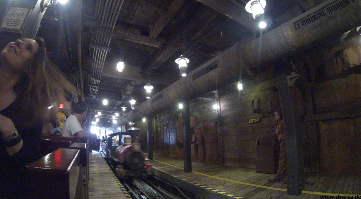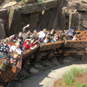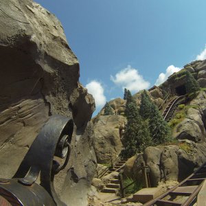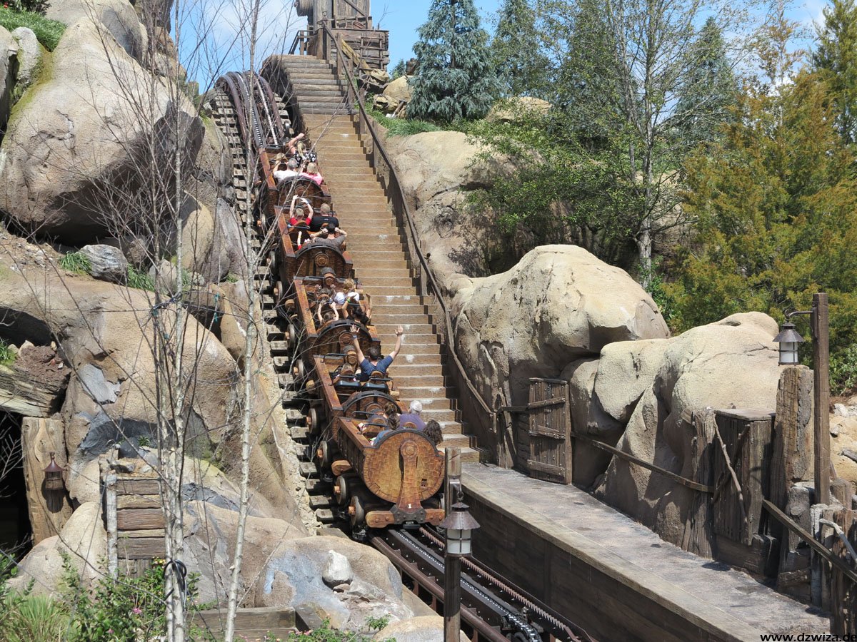 Im angrenzenden Frontierland wird es nass: Splash Mountain ist die dortige Wildwasserbahn, die eine sehr detaillierte thematische Gestaltung hat. Der letzte große Sturz ist der einzige Fahrabschnitt, der einsehbar ist und durchaus reichlich nass daherkommt. Mit kleinen Fähren kommt man auf Tom Sawyers Island, einer Insel, die man zu Fuß erkunden kann. Hier ist es meist etwas ruhiger. Gut, um mal ein paar Minuten abzuschalten. Und dann ist das noch die zweite große Hauptattraktion: Big Thunder Mountain Railroad. Eine Achterbahn von sehr großen Ausmaßen in Bezug auf die verbaute Fläche. Die Fahrt selbst ist absolut familientauglich.
