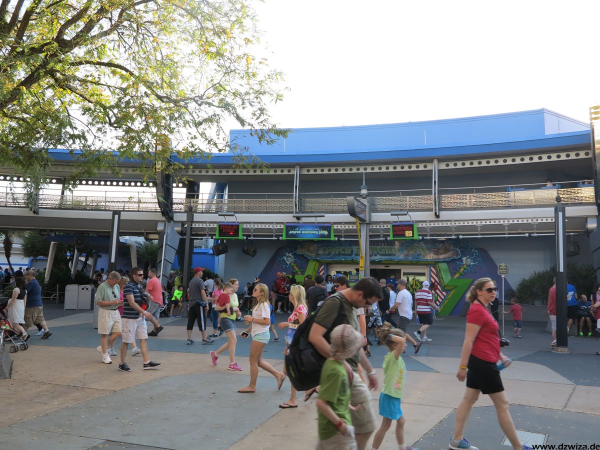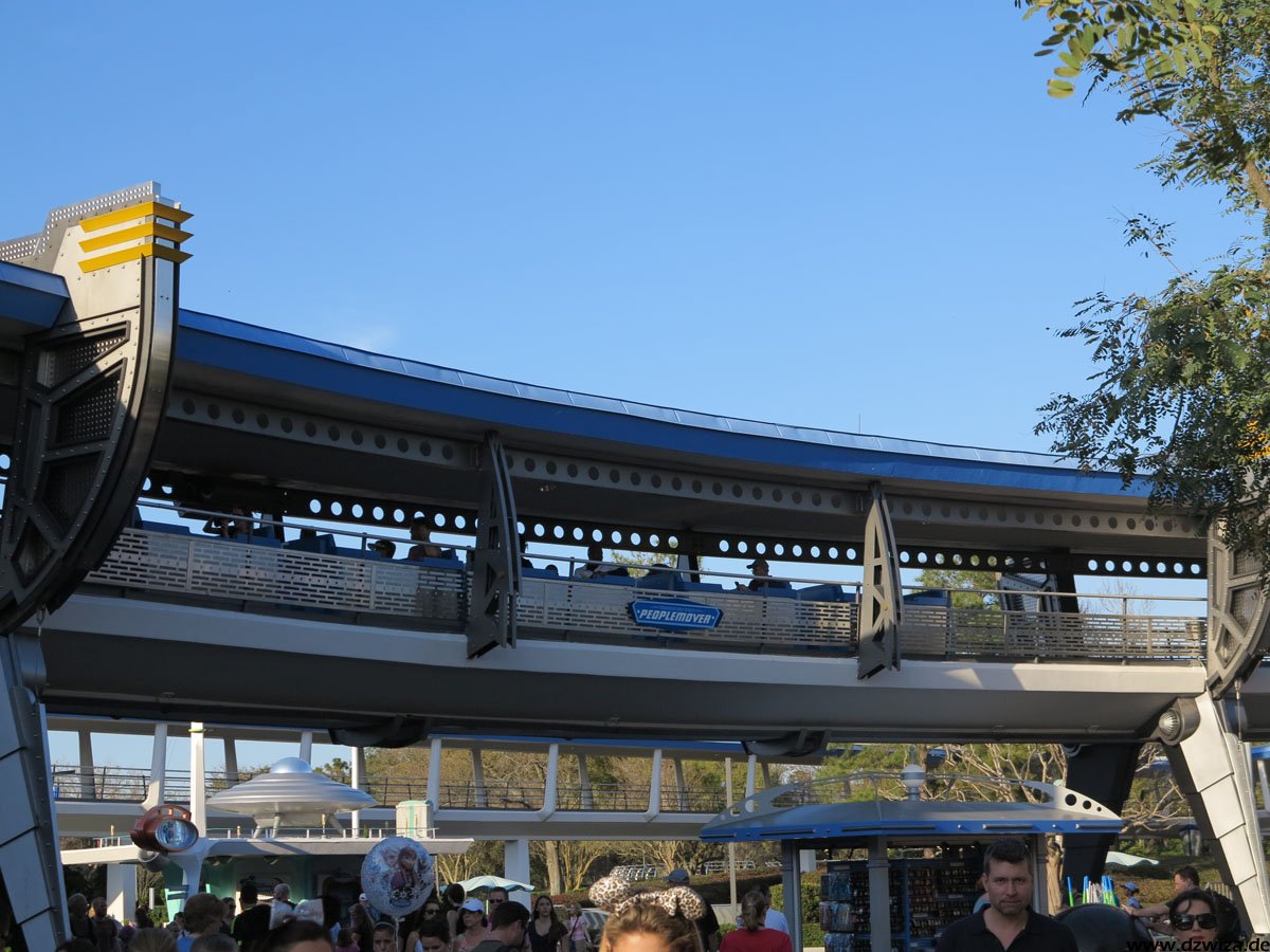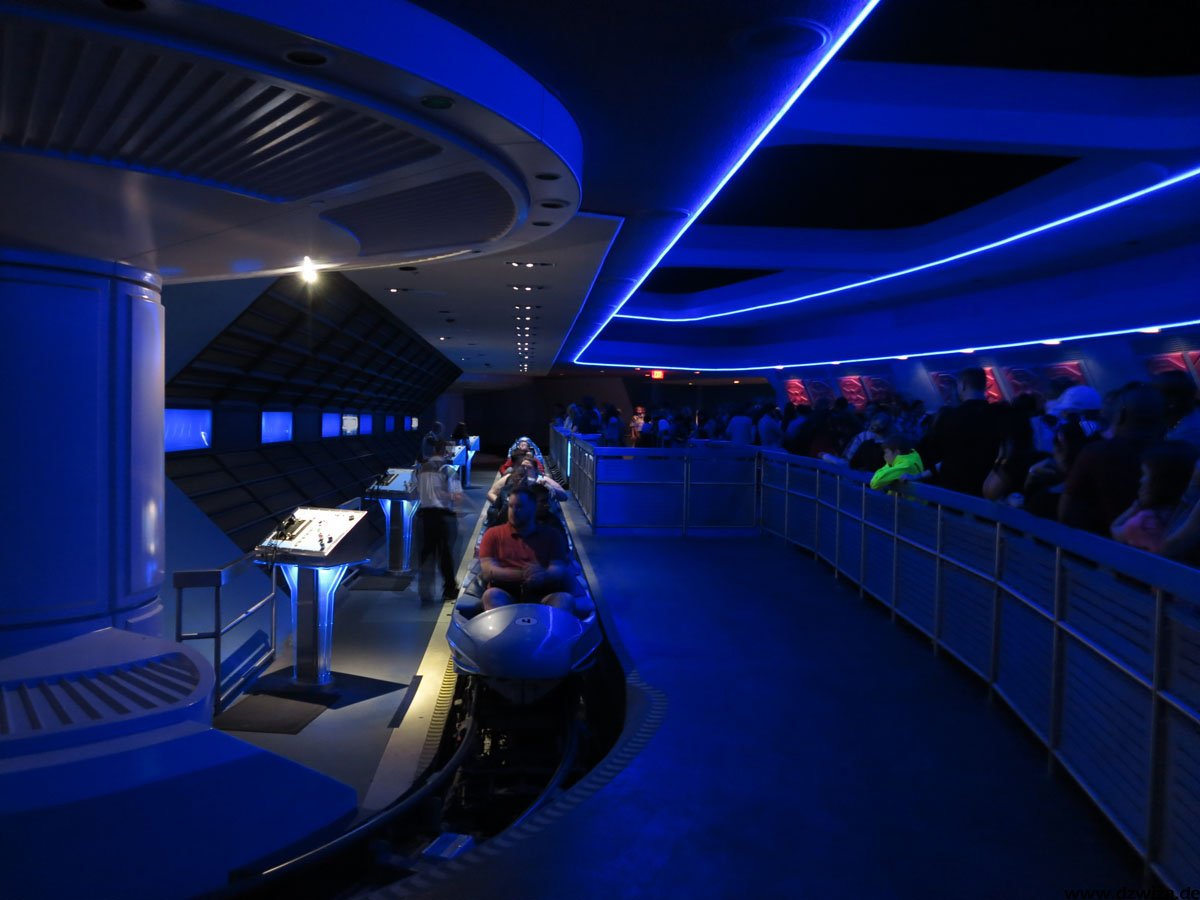 Bleibt noch das Tomorrowland: Hier wird die Zukunft gezeigt - was schnell das Problem aufwerfen könnte, dass die Realität die Zukunft einholt. Daher hat man sich auf die Darstellung einer Zukunft konzentiert, wie man sie sich in der ersten Hälfte des 20. Jahrhunderts vorgestellt hat. Auf jeden Fall gibt es hier eine ziemlich bunte Mischung: Buzz Lightyears Space Rangers Spin: Eine interaktive Fahrt, in der man mit Laserkanonen in der Welt des Buzz Lightyear aufräumen darf. Space Mountain ist etwas ganz anderes als die Achterbahn, die vielleicht der eine oder andere Leser hier aus Paris kennt: Kein Abschuss, kein Looping, eher eine Fahrt im dunkeln, die mit einer Wilden Maus mit ihren Haarnadelkurven vergleichbar ist. Innerhalb des Magic Kingdom ist es die "erwachsenste Achterbahn". Stitchs Great Escape! ist eine Show mit viel Sound- und Lichteffekten, die auf wohldosierte Schreckmomente setzt. So kann es passieren, dass einem da mal plötzlich ein Alien in den Nacken hustet oder auf die Schulter greift. Tomorrowland Speedway ist eine Autofahrt auf einer Rennpiste und der PeopleMover eine entspannte Rundfahrt. Neben den hier erwähnten Attraktionen gibt es noch zahlreiche Shows.