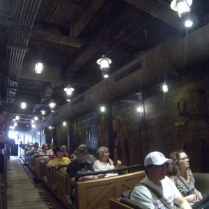 Und dann schließt sich auch schon das Fantasyland an. Es ist der größte und prägendste Bereich des Magic Kingdom. Natürlich kommt hier vom Hauptverteiler vor dem Schloss auch direkt hin, man muss dazu nicht durch die anderen Themenbereiche. Einfach links oder rechts am Schloss vorbeigehen. Neben einigen kleines Fahrgeschäften bilden hier alte Märchen, Trickfilme und Fantasy-Geschichten den Rahmen. Es gibt Klassiker wie Peter Pans Flight, die Schöne und das Biest oder die Grotte von Ariel und für kleine Gäste auch die Abenteuer von Winnie Poo. Mickeys PhilharMagic ist ein Kino mit einem musikalischen Abenteuer von Mickey Maus und anderen Disney-Charakteren in 3D. Warnen sollte man an dieser Stelle vor "It's A Small World" oder besser - vor dem Soundtrack dieser Bootsfahrt... Ohrwurmgefahr, man kann sich trotz oder gerade wegen der sehr einfachen Melodie nicht dagegen wehren. Ziemlich neu ist der Seven Dwarfs Mine Train: Eine Achterbahn, die in die Diamantenmine der sieben Zwerge führt. Man sitzt dazu in Loren, die seitwärts schwanken können. Ein ungewöhnliches Fahrsystem, aber auch hier: Absolut familientauglich. Die Tendenz zu sehr langen Wartezeiten ist hier besonders hoch.