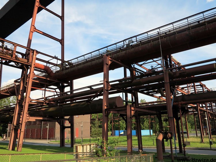 Die Zeche Zollverein im Raum Essen war bis Mitte der 1980er-Jahre ein Steinkohlebergwerk. Heute, viele Jahre nach der Schließung, wurde vieles sorgfältig rekonstruiert und instandgesetzt, so dass ein riesiges Areal mit einem Industriedenkmal entstanden ist. Ein kleiner Rundgang über das Außengelände.