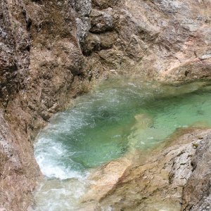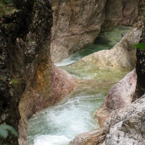 Diese Almbachklamm hat übrigens nichts mit der gleichnamigen Klamm in Österreich zu tun, in der geführte Canyoningtouren angeboten werden. Dazu gibt es einen separaten Fotobericht hier auf der Seite unter "Mehr Wassersport / Canyoning" aus dem Jahr 2009.