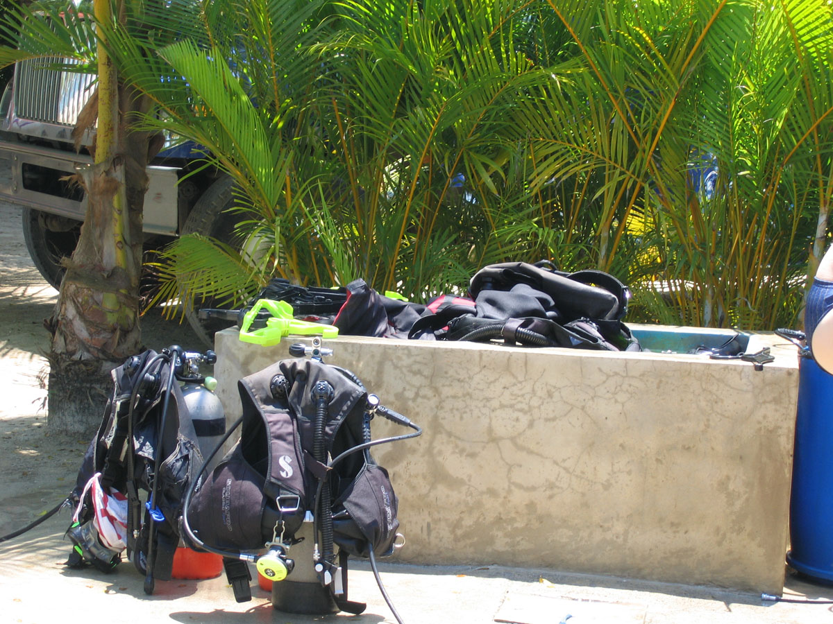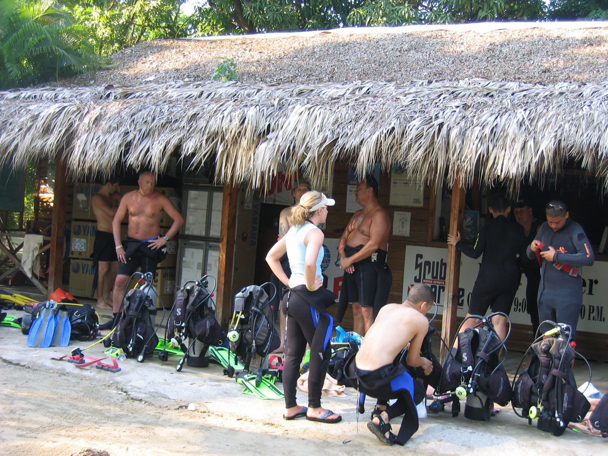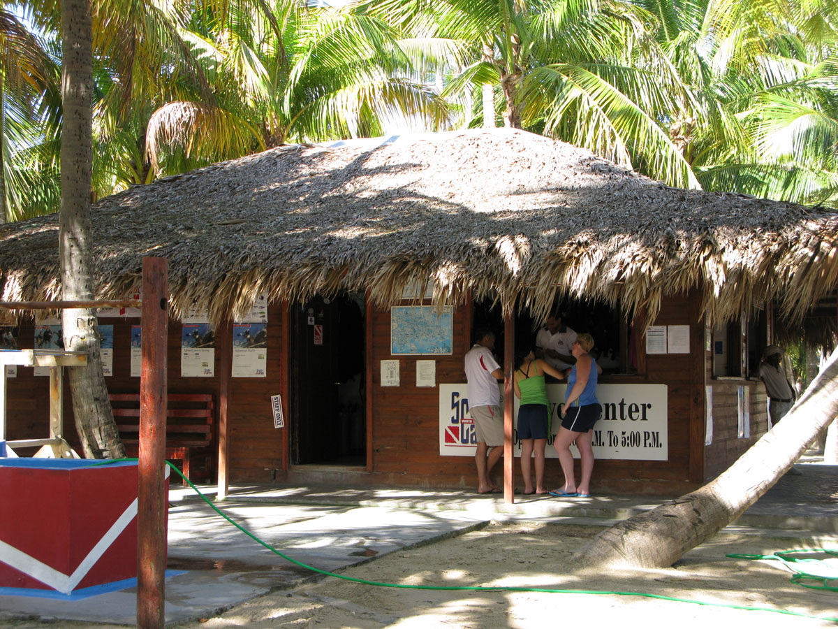 Dieser Bericht von 2009 ist ein kurzer Bericht über Veränderungen. 2006 war ich schon mal hier und erlebte eine Tauchbasis mittleren karibischen Standards. 2009 gab es einige Veränderungen: Die offensichtlichste Neuigkeit ist, dass das bisherige Basisgebäude in einer kleinen ruhigen Bucht an der Seite des Hotels nicht mehr genutzt wird. Es gammelt vor sich hin. In der Bucht ankern noch die beiden Tauchboote, sonst ist dort bis auf ein paar Hütten von Händlern kein Leben mehr. ScubaCaribe hat eine neue Basis gebaut und betreibt nun das komplette Wassersportcenter des Hotel (Tauchen, Surfen, Tretboote, Kajaks....) in einem viel zu kleinen Gebäude an zentraler Stelle am Hauptstrand. Der deutsche Basisleiter ist seit Ende 2008 nicht mehr an Bord, die Basis ist nun fest in einheimischer Hand.