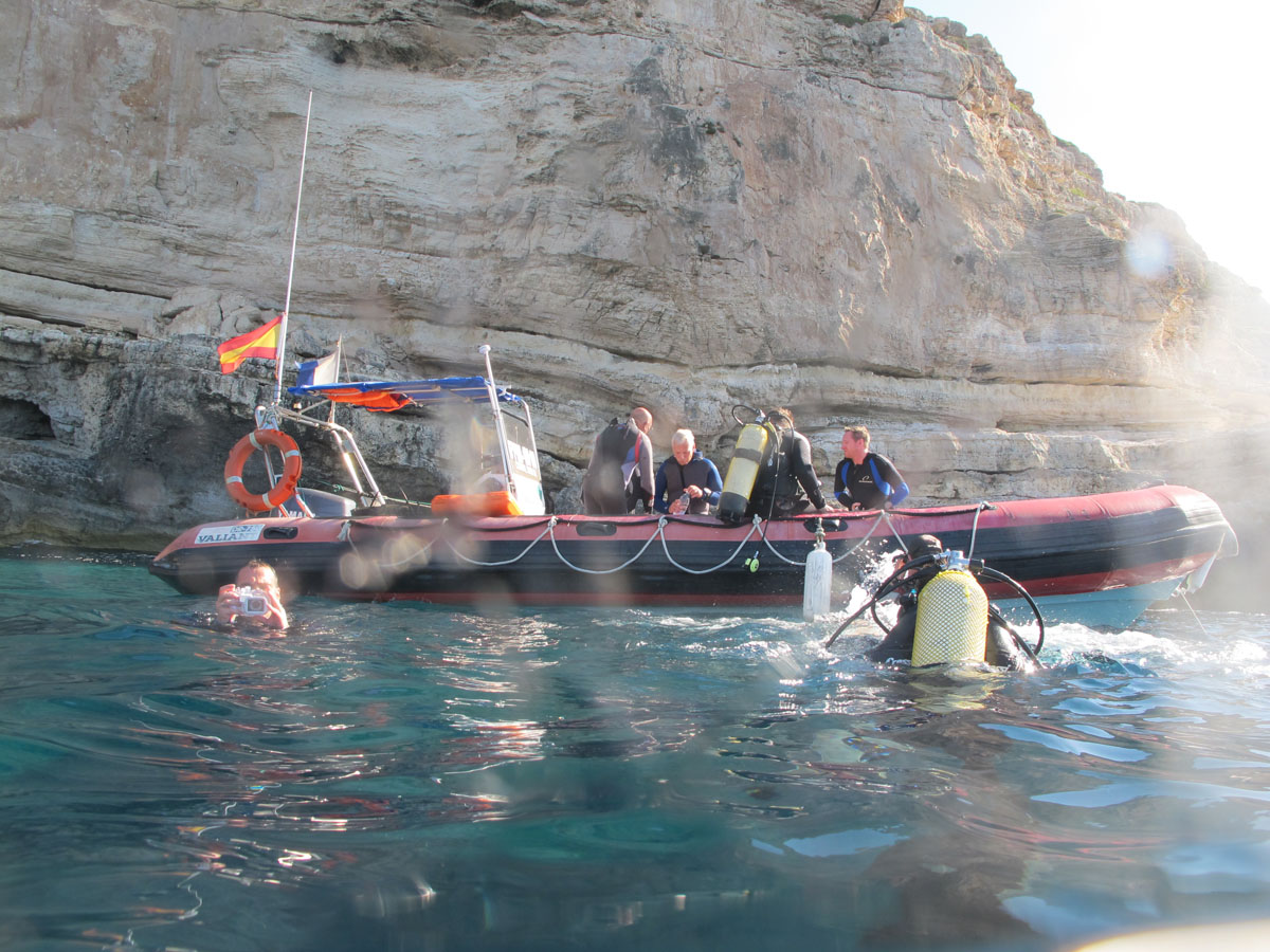 Nachdem in Spanien vor einigen Jahren offenbar die gesetzlichen Anforderungen an die gewerbliche Personenbeförderung auf Booten verschärft wurde (nichts anderes sind Bootsausfahrten für Taucher), haben viele Tauchbasisbetreiber keine eigenen Boote mehr. Es wird verstärkt von Land aus getaucht. Die First Class Diver betreiben kein eigenes Boot, versuchen aber, mindestens einmal in der Woche in Kooperation mit anderen Tauchbasen oder durch Miete eines Bootes Ausfahrten anzubieten, die zu Tauchplätzen führen, die von Land aus nicht zu erreichen sind. Hier sollte man gezielt nachfragen und sich dazu anmelden. Es lohnt sich in der Regel.