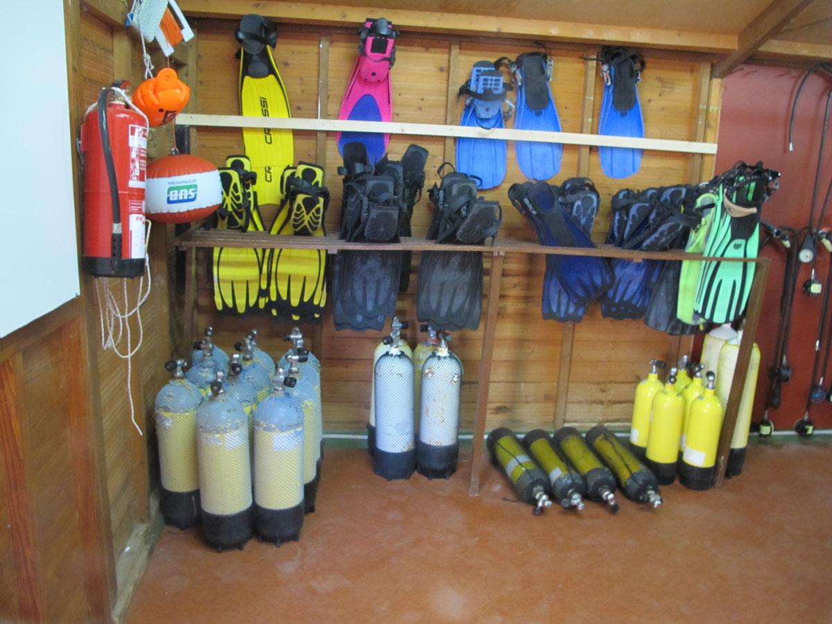 Als die Basis gefunden war, war der Rest einfach: Der Checkin ging mit den üblichen Papieren schnell und unkompliziert. Die Basis hat ausreichend Platz für das Spülen und Trocken der eigenen Ausrüstung (wobei Gäste mit eigener Ausrüstung die Ausnahme darstellten), Leihausrüstung, die auf den ersten Blick einen guten bis sehr guten Eindruck machte und ein sorgfältig sortiertes Materiallager. Der erste Eindruck war gut und sollte es dann auch bleiben.