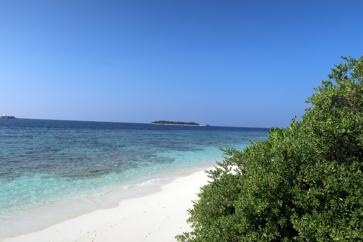 Hat man den Inselnamen einmal in seiner ursprünglichen Form ausgesprochen und den Knoten wieder aus der Zunge entfernt, hat man sicher auch schon einiges von der Insel gesehen. Lang und recht schmal präsentiert sie auf der einen Seite die Serviceeinrichtungen von Rezeption über Tauchcenter, Spa, Sport, Restaurant und mehr und auf der anderen eine lange Kette einzelner Bungalows. Auf der einen Seite sind zusätzlich Wasserbungalows ins Meer gepflanzt worden. Barfuss-Dschungelpfade führen um und durch die Insel.