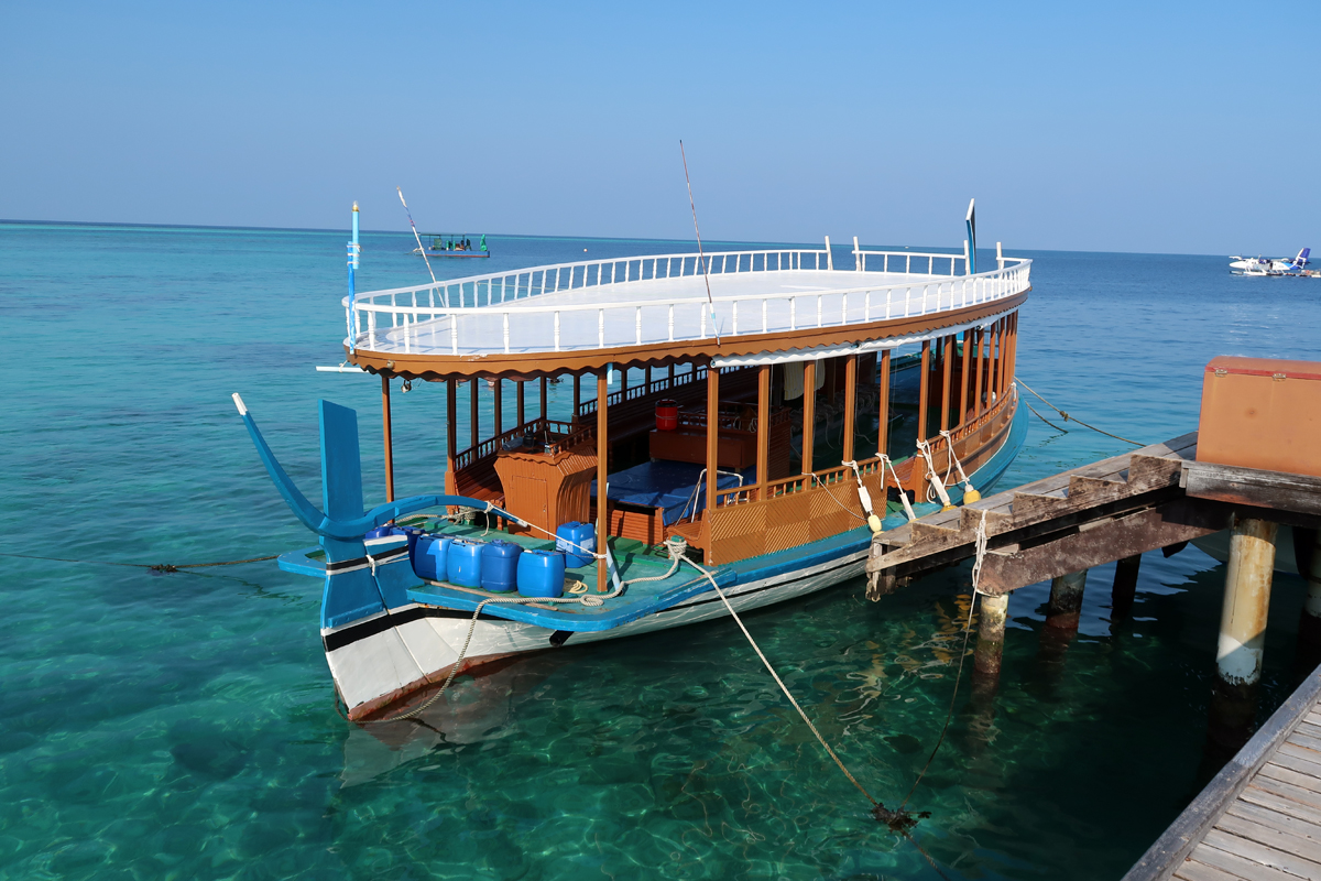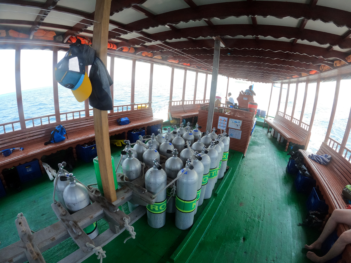 Bootstauchgänge werden üblicherweise morgens um 08:30 und mittags um 14:00 Uhr angeboten. Die Fahrt am Mittag ist ein normaler einzelner Tauchgang bei einem Tauchplatz in der Nähe. Morgens findet üblicherweise ein Double-Tank-Dive statt. Es geht zu Tauchplätzen, die etwas weiter entfernt liegen. Nach dem ersten Tauchgang ist an Bord eine kleine Pause vorgesehen, dann versetzt das Boot zum zweiten Tauchplatz, meist irgendwo auf der Rückweglinie Richtung Reethi Beach. Der zweite Tauchgang findet statt und gegen 13:00 Uhr ist man auf der Insel zurück.