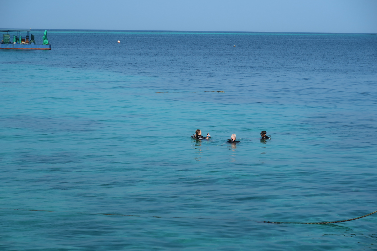 Die gegenüberliegende Seite an der Basis, die auch für den Checkdive genutzt wird, wird für Nachttauchgänge und Ausbildung betaucht, aber nur zusammen mit Guides, weil hier Bootsverkehr herrscht: Service-Boote, ankommende und abreisende Gäste.