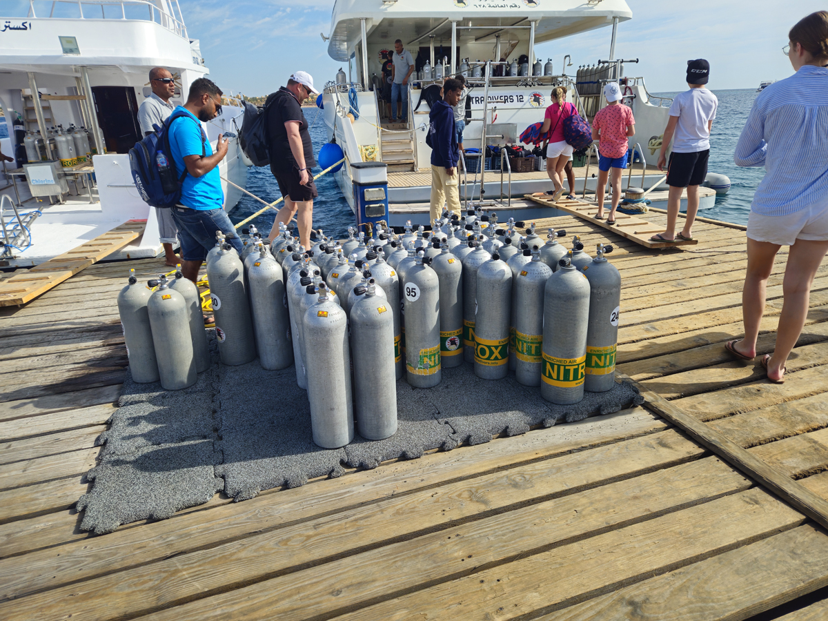 Beworben wir das Tauchen mit Nitrox. Wer bereits zertifiziert ist, bekommt die Nitrox-Füllung ohne Aufpreis. Ansonsten ist es sicher eine gute Idee, über diesen Ergänzungskurs nachzudenken. Ich habe über die Jahre die Erfahrung gemacht, das gerade bei einer Reihe von Wiederholungstauchgängen Nitrox eine sehr gute Option ist. Eigentlich sollte es immer eine 32%-Füllung sein. An allen Tagen habe ich aber meist eine 28%-Füllung gehabt. Gemessen wird auf den Booten.