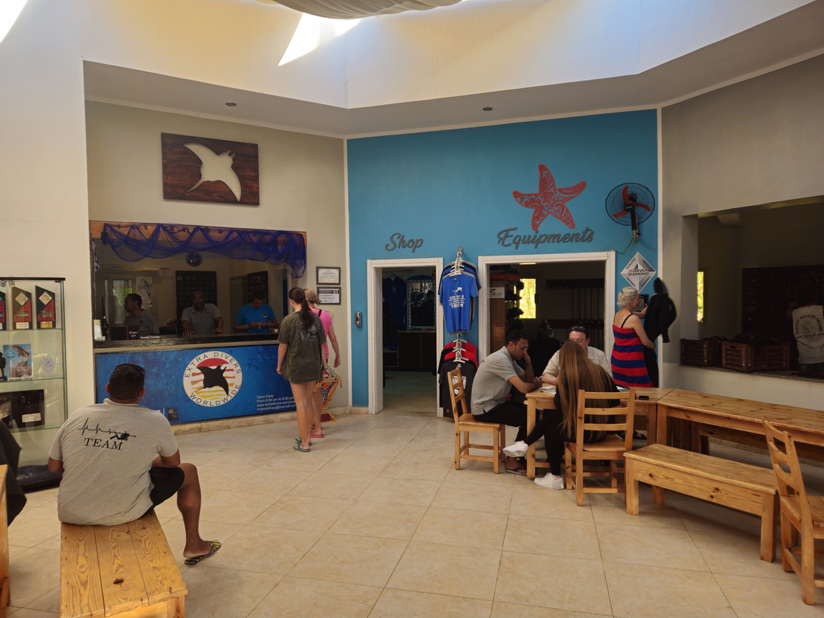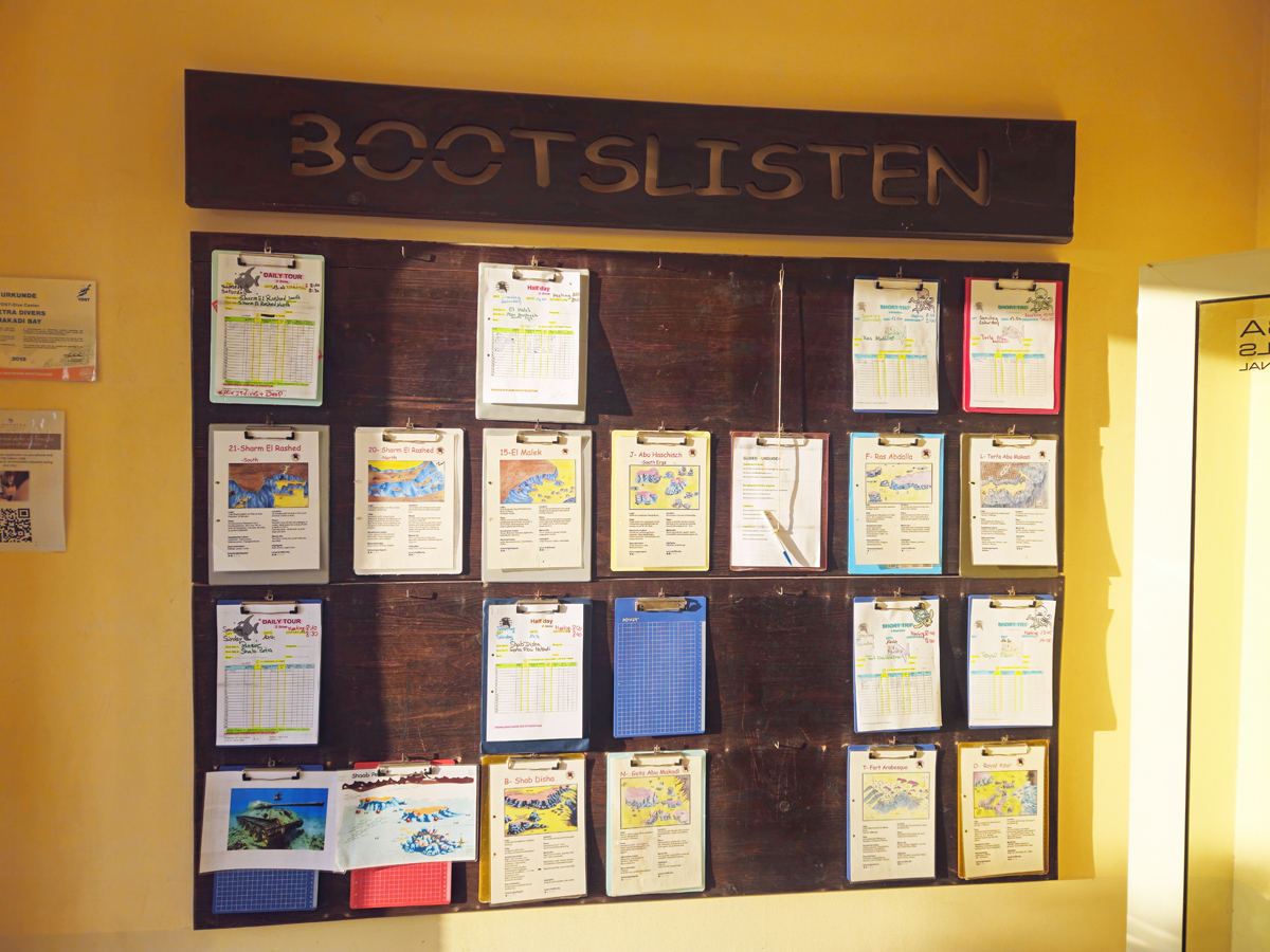 Die Anmeldung läuft freundlich und routiniert, es sind die üblichen Formulare auszufüllen und das Logbuch wird kurz durchgesehen. Alternativ wird eine medizinische Selbstauskunft / Erklärung oder ein gültiges Tauchattest verlangt.