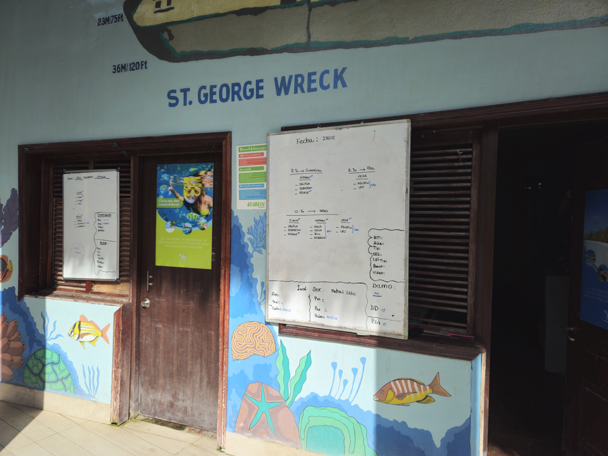 In der Basis eingetroffen werden die üblichen Formalitäten schnell erledigt. Der Gesundheitscheck erfolgt per PADI-Formular, das Logbuch wird kurz durchgeblättert. Der mitgebrachte Voucher wird noch mal auf eine Rechnung umgeschrieben und der Papierkram ist dann erst mal durch.