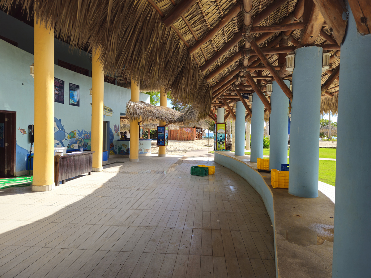 In Bayahibe reihen sich weniger Touristenburgen am Strand entlang als in Punta Cana, doch einige große Resorts findet man dennoch vor Ort. Meist gehört eine eigene Tauchbasis eines Subunternehmens mit dazu. In einer dieser Anlagen, dem Iberostar Hacienda Dominicus, ist die Tauchbasis der Dressel Divers angesiedelt. Mit dieser Basis hatte ich zuvor akzeptable Erfahrungen in Mexiko gemacht, so dass die Wahl einfach war.